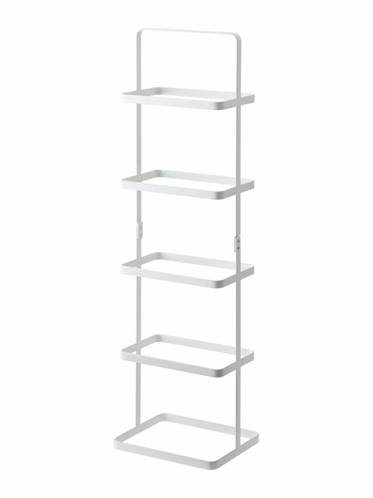 Kooltaan kompakti Yamazaki Tower Shoe Rack -kenkähylly sopii vaivatta kapeaankin eteiseen, vaatehuoneeseen tai kaappiin. Kevyt, teräsrunkoinen teline on helppo nostaa ja siirtää paikasta toiseen. Hyllyyn mahtuu viisi paria kenkiä. Tuote on koottava. Suunniteltu Japanissa.