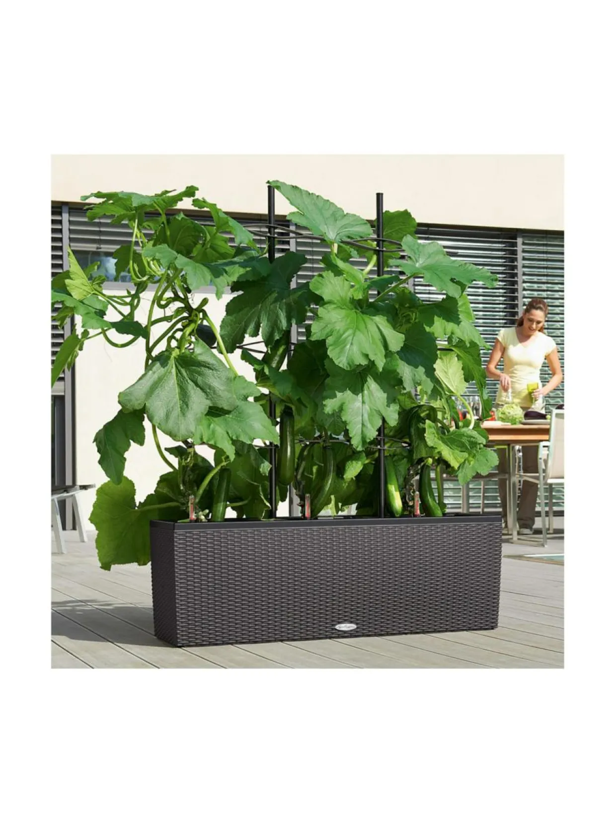 Pakettiin kuuluu ruukku + altakasteluosat + pussi kastelurakeita + korotusjalat + köynnöskehikko
