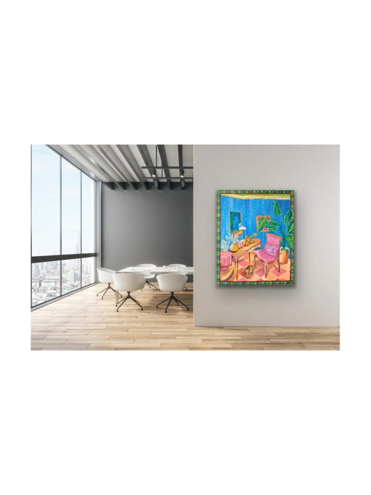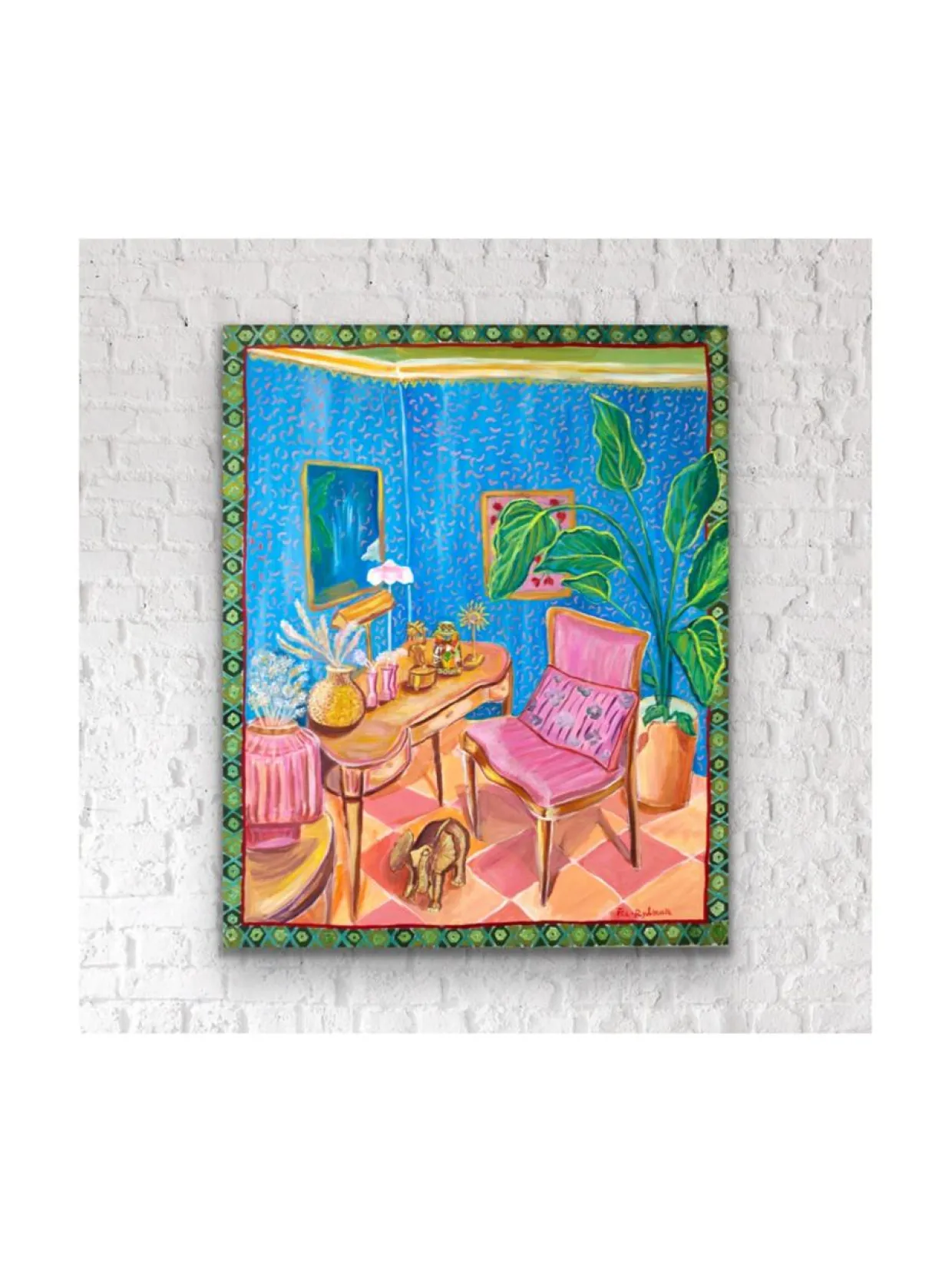 ”Unelmien olohuone” on vuonna 2023 valmistunut alkuperäinen Pia Rydmanin akryylimaalaus. Se on maalattu pellavakankaalle ja sen koko on 100×80 cm. Ripustusvalmis.