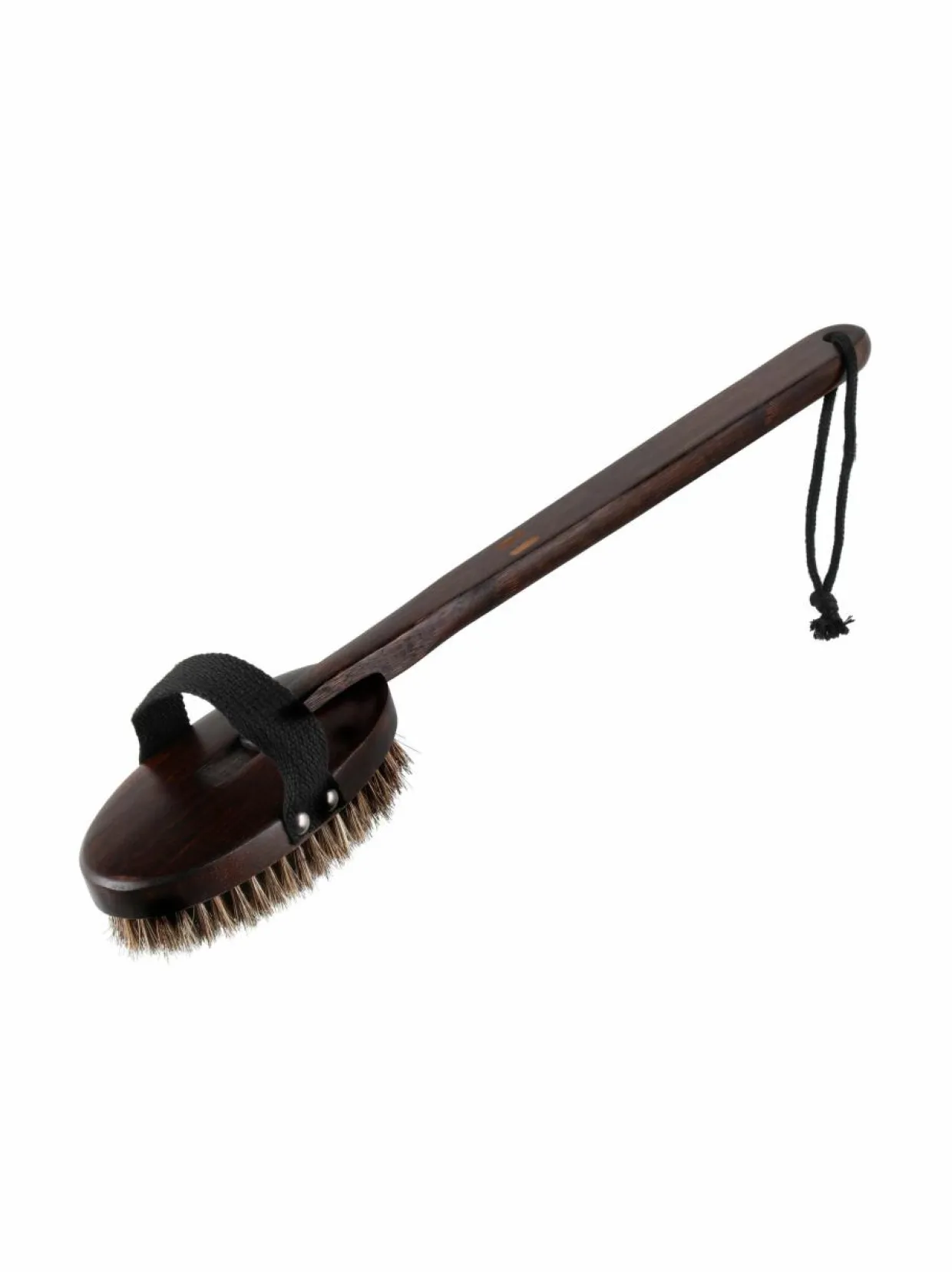 Varrellinen pesuharja bambusta ja luonnonharjaksesta. Hiero ihosi puhtaaksi kevyesti kuorivalla harjalla ja lempisaippuallasi. Virkistää vartalosi verenkiertoa. Kahva on helposti irrotettavissa, jolloin pelkkää harjaosaa on mahdollista käyttää juuttisen käsilenkin kanssa. Harjan pyöristetyt muodot ja bambuöljyllä käsitelty pinta tuntuvat mukavalta kädessä. Käsi- ja ripustuslenkki juuttia.