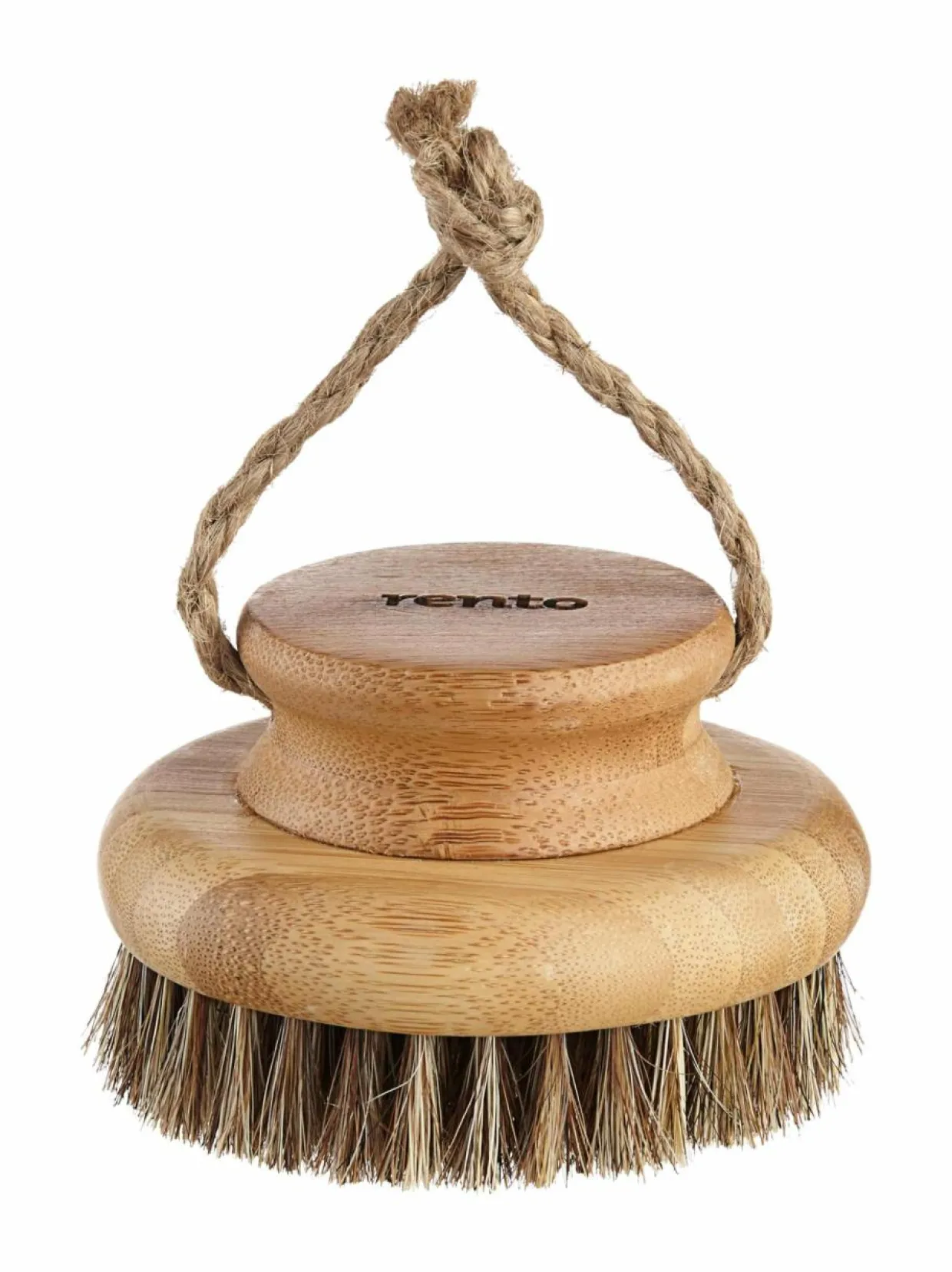 Pyöreällä harjalla voit kuivaharjata ihoa tai käyttää harjaa pesemiseen. Materiaali on bambua ja harjakset luonnonharjasta. Harjan halkaisija on 10 cm.