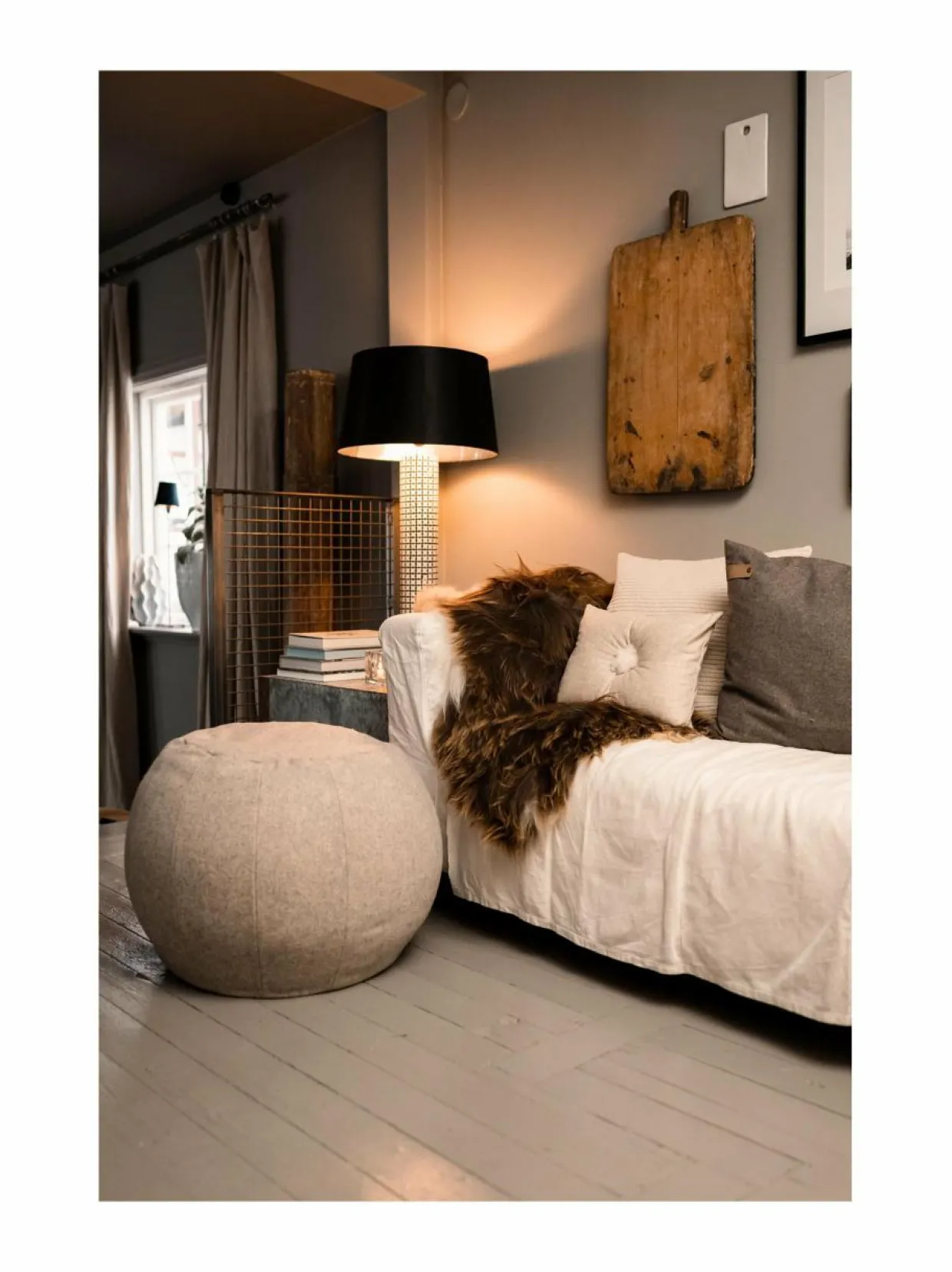 Shepherdin pyöreä Viskan-rahi on kudottua ja pehmeää villaa. Rahin sisäpussissa on puuvillalaadusta valmistettu sisäpussi, joka on täytetty pehmeillä polystyreenihelmillä, mikä tarjoaa upean mukavuuden. Viskan-rahin koristeellinen kahva tekonahkaa. Tämä istuinrahi ei ole vain kiva sisustusyksityiskohta, vaan se voi toimia myös arvokkaana istumapaikkana, kun vieraita on paljon.Villarahin päällinen voidaan irrottaa ja puhdistaa pohjassa olevan kiristysnyörin ansiosta. Alapuoli kudottua tekstiiliä.