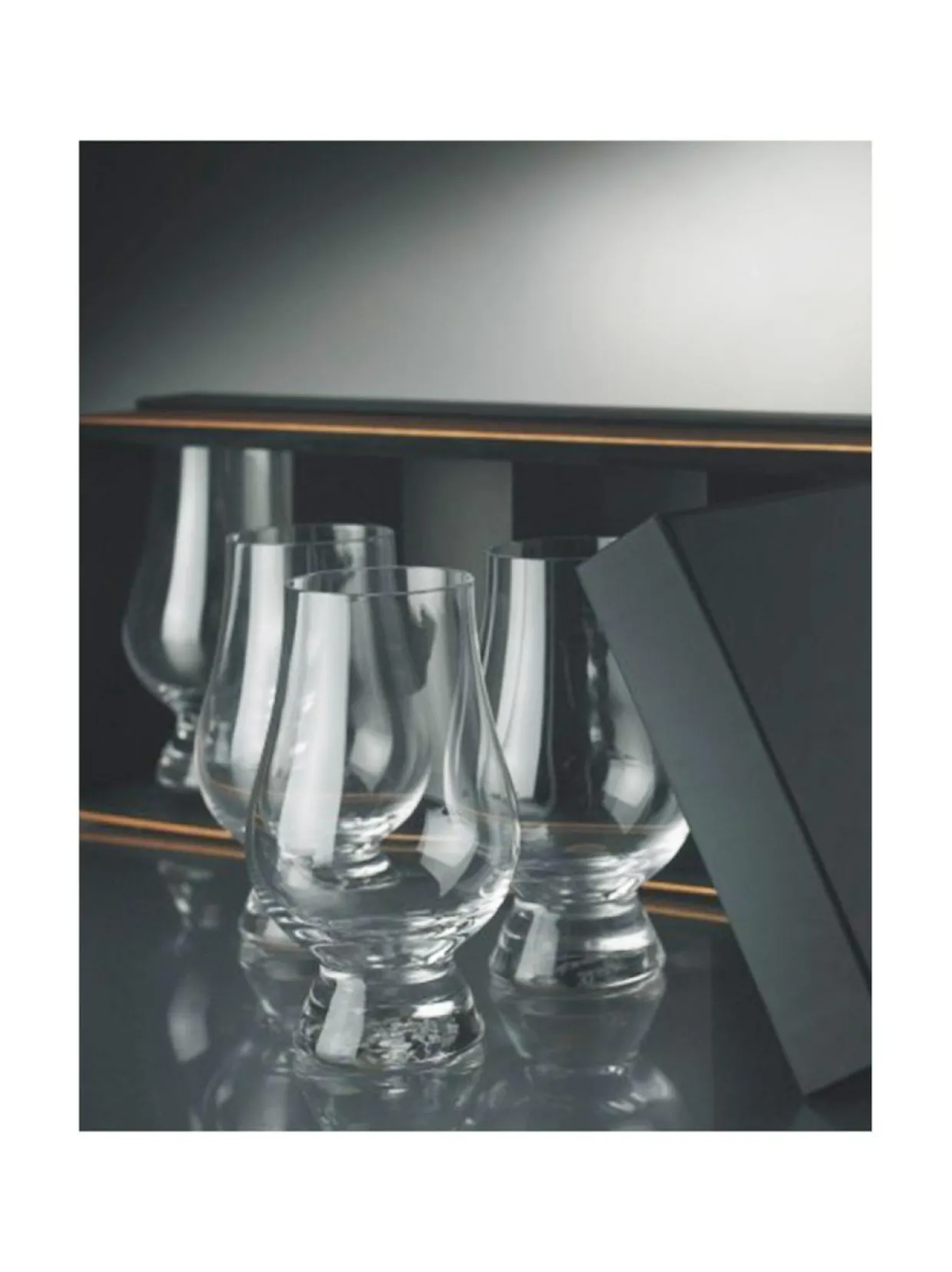Fyra världsberömda Glencairn glas i den helt nya snygga svarta presentförpackningen.