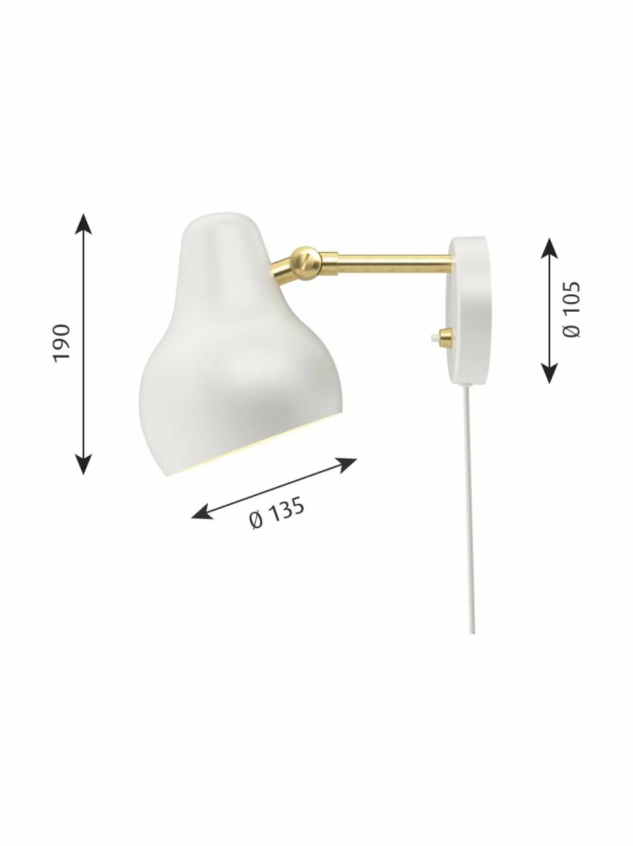Varjostimen kulmaa voi säätää valonjaon optimoimiseksi. Valaisimessa on integroitu, energiaa säästävä LED-valonlähde.Tuotenumero134455158 ErityistäEnergialuokka A+ MateriaaliPinta pulverimaalattua messinkiä, rungon takaosa ja varjostin alumiinia ja varsi messinkiä. Kokotiedot135 x 190 x 290 mm Leveys135 mm Korkeus190 mm Paino1.1 kg Johdon pituus3.3 m SuunnittelijaVilhelm Lauritzen ValonlähdeLed 2700K 9.6W, ei sisälly pakkaukseen. Väri1 Koko135 x 190 x 290 mm Avainsanatvalaisin, seinävalaisin, Louis Poulsen