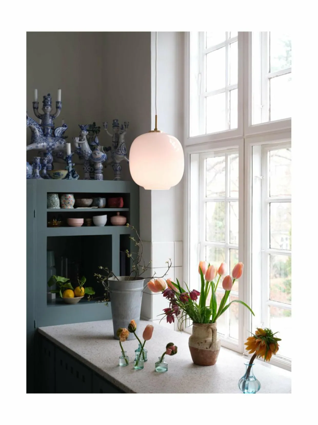 Kaunis ja elegantti valaisin saa aikaan yhtenäisen, yleisluonteisen hajavalon. Kattovalaisimen lasikuvun alaosassa oleva aukko suuntaa valon alaspäin. Suupuhalletun opaalilasin laatu varmistaa, että valaisin valaisee tasaisesti.VL 45 Pale Rose -riippuvalaisin on uudistettu versio suositusta VL 45 Radiohus -riippuvalaisimesta, jonka on suunnitellut alun perin Vilhelm Lauritzen, Tanskan yleisradioyhtiön pääkonttoriin.Vaaleanroosa suupuhallettu lasivarjostin yhdistyy harjattuihin messinkielementteihin, jotka tuovat malliin hienovaraista ylellisyyttä.