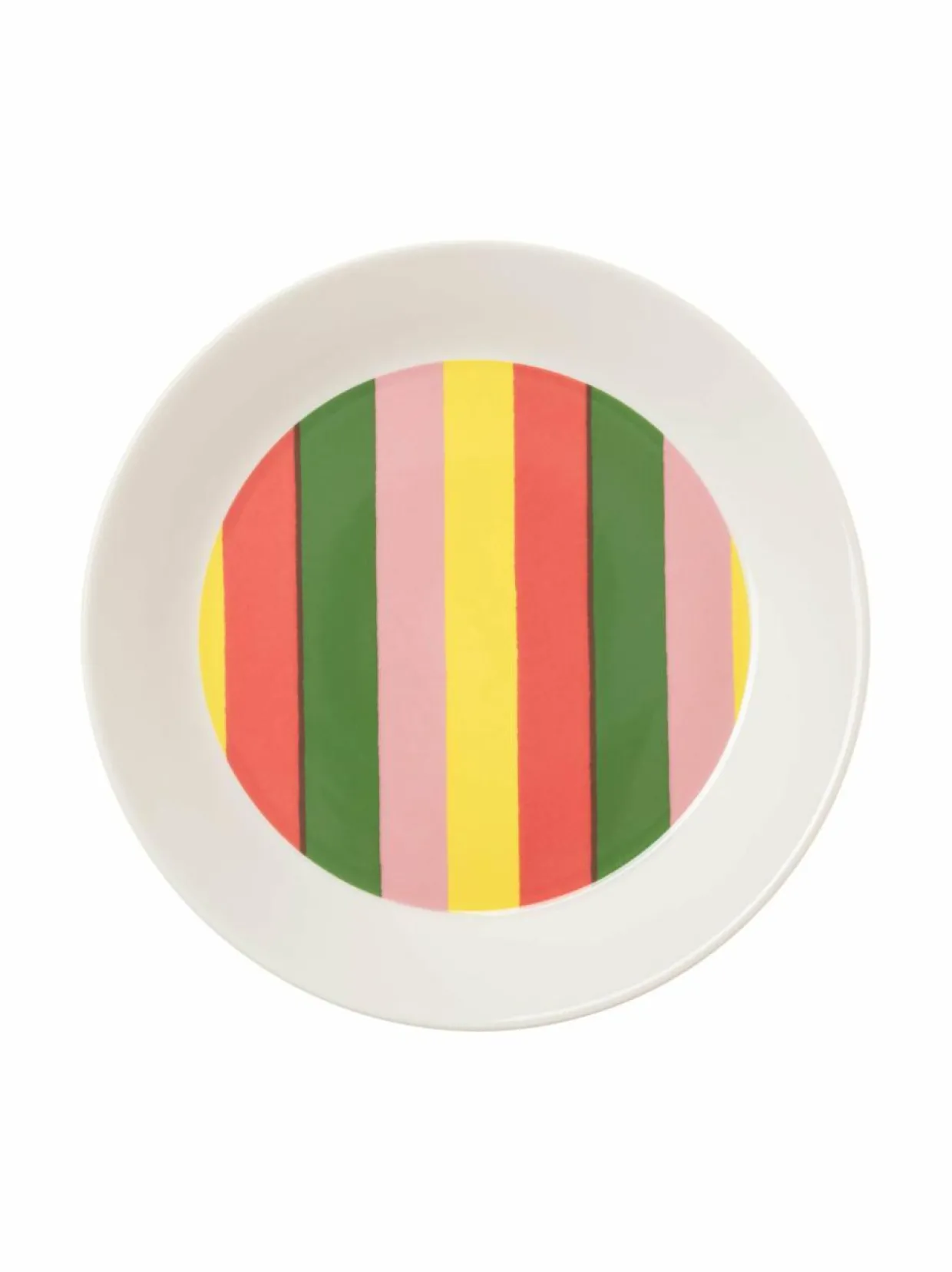 Pirteä ja värikäs Vuokko-lautanen, jossa on Vuokko Nurmesniemen rohkea, vuonna 1973 suunniteltu kuvio, piristää ruokailuhetkeä kuin ruokailuhetkeä ja sopii täydellisesti sekä arkipäiväisiin aterioihin että juhlahetkiin. Sen eläväinen ja erottuva kuvio tekee siitä näyttävän lisän mihin tahansa kattaukseen ja ihanteellisen lahjavalinnan.