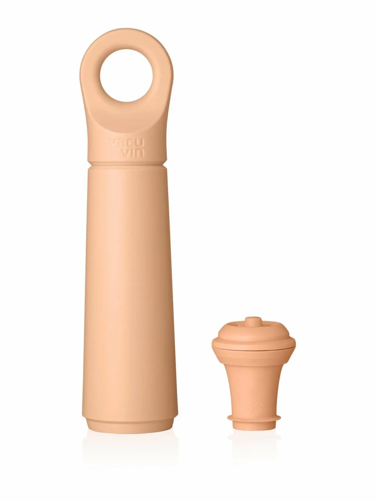VacuVin Wine Saver Loop -viinipumppu on kätevä ja helppokäyttöinen tapa säilyttää avattu viinipullo tuoreena. Viinipumppu poistaa pullosta ilman ja hidastaa hapettumisprosessia, jolloin viini säilyttää makunsa ja arominsa pidempään. Viinipumppuun kuuluu korkki, joka sulkee pullon tiiviisti ja estää ilman pääsyn pulloon. Korkissa on myös kätevä silmukka, johon korkin voi ripustaa, kun sitä ei käytetä. Viinipumppu on valmistettu 98 %:sta kierrätetystä muovista. Viinipumppu on kooltaan 3,5 x 16 x 3,5 cm ja se sopii täydellisesti kotikäyttöön.