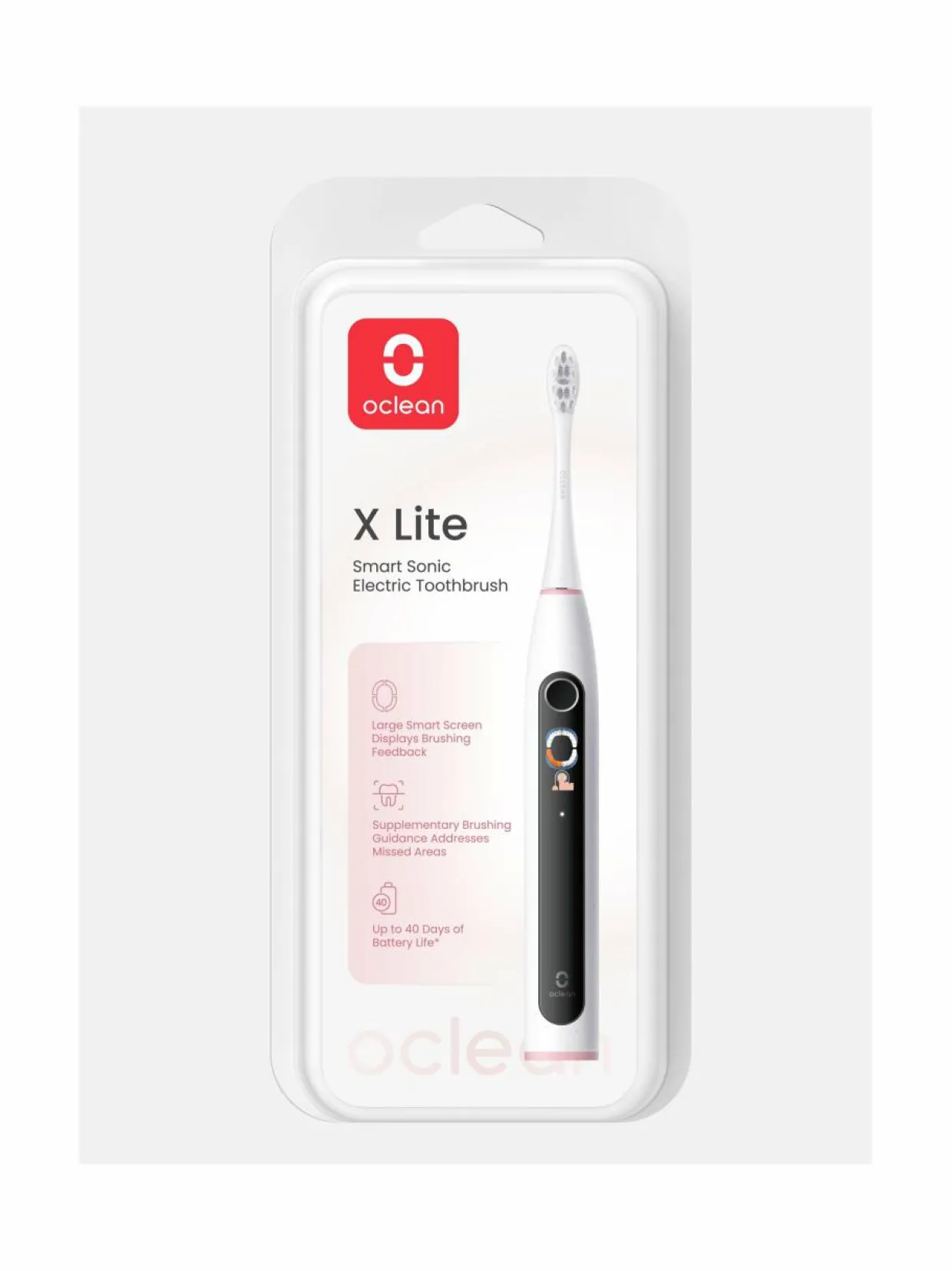 Oclean X Lite Smart Sonic on älykäs sähköhammasharja, joka on varustettu suurella näytöllä. Näytöltä voit helposti seurata harjausalueita reaaliajassa. Voit katsoa harjaustulokset välittömästi ja samalla näet alueet, jotka vaatisivat tarkempaa puhdistusta.