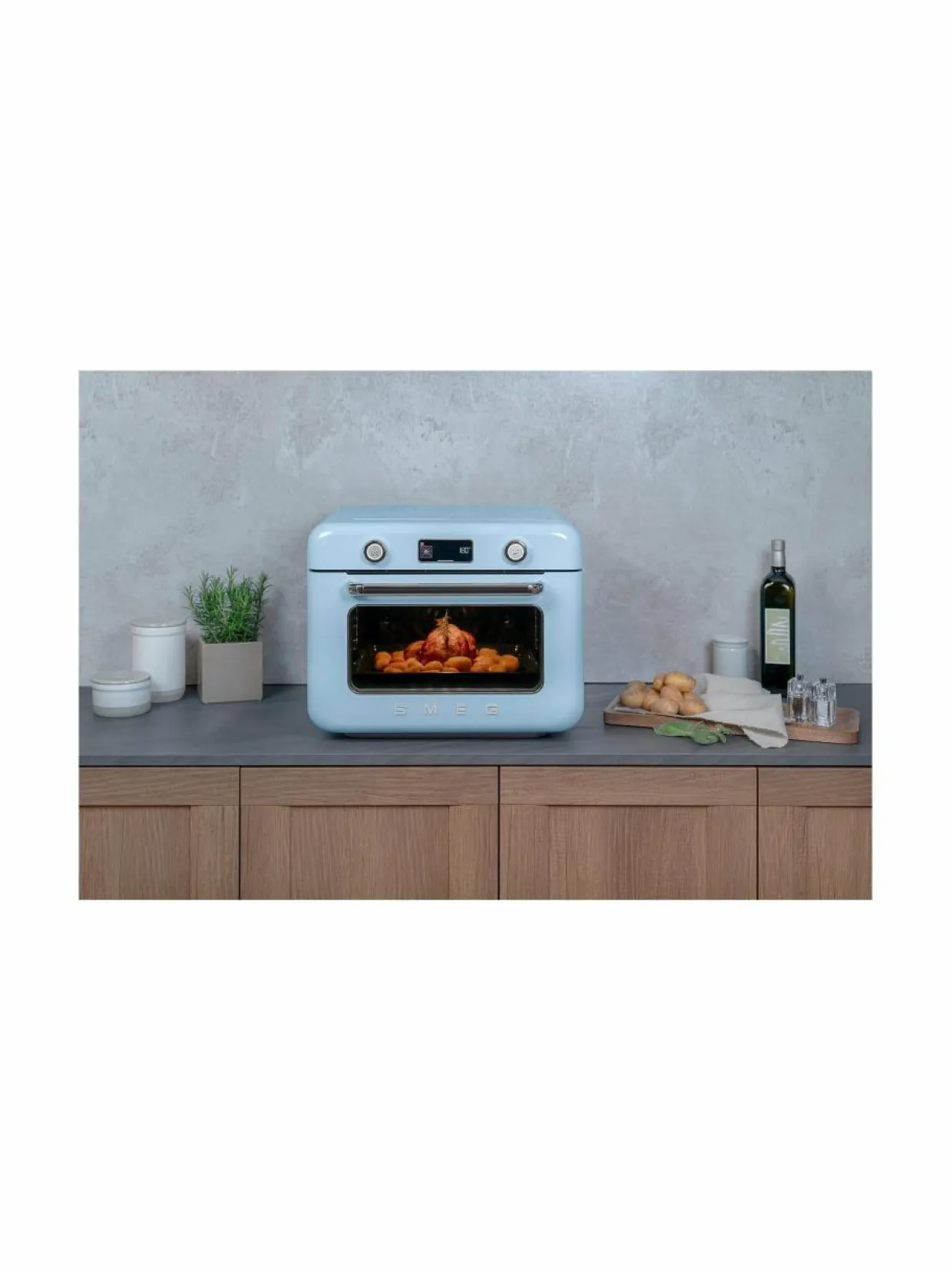 Upeaa retromuotoilua edustava Smegin yhdistelmähöyryuuni on tyylikäs, taitava ja tehokas keittiöapuri. Italiassa valmistettu vapaasti seisova höyryuuni keittiön työtasolle. Monipuolisuutta ja ammattimaisia tuloksia perinteisten ruoanlaittotoimintojen, höyrytystoimintojen ja ammattikokkien laatimien ohjelmien ansiosta.