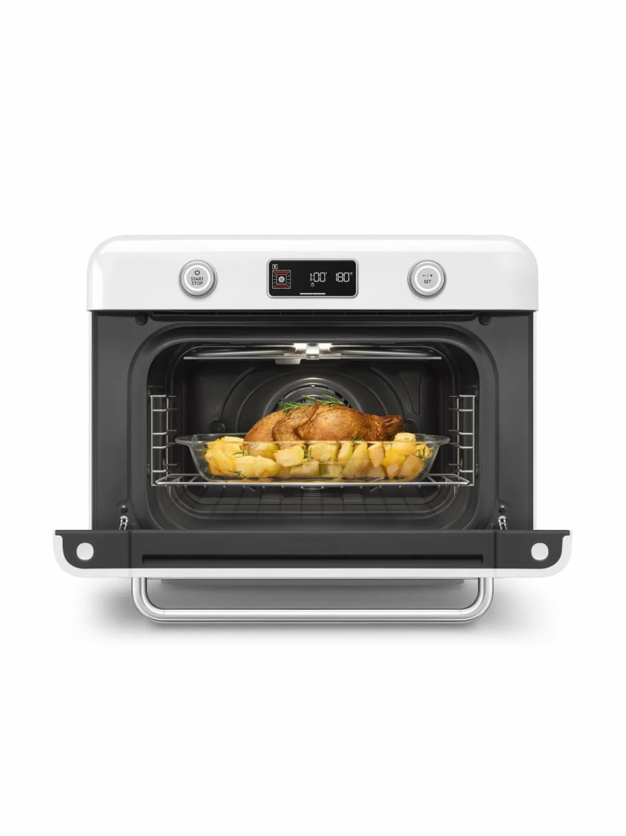 Upeaa retromuotoilua edustava Smegin yhdistelmähöyryuuni on tyylikäs, taitava ja tehokas keittiöapuri. Italiassa valmistettu vapaasti seisova höyryuuni keittiön työtasolle. Monipuolisuutta ja ammattimaisia tuloksia perinteisten ruoanlaittotoimintojen, höyrytystoimintojen ja ammattikokkien laatimien ohjelmien ansiosta.