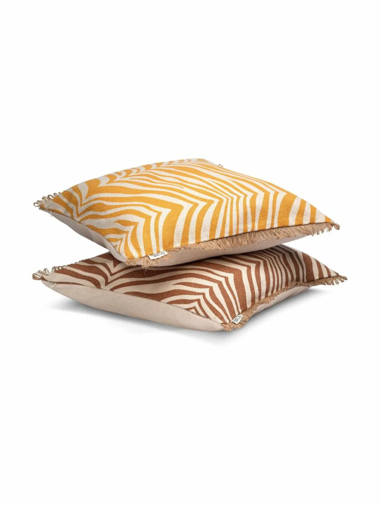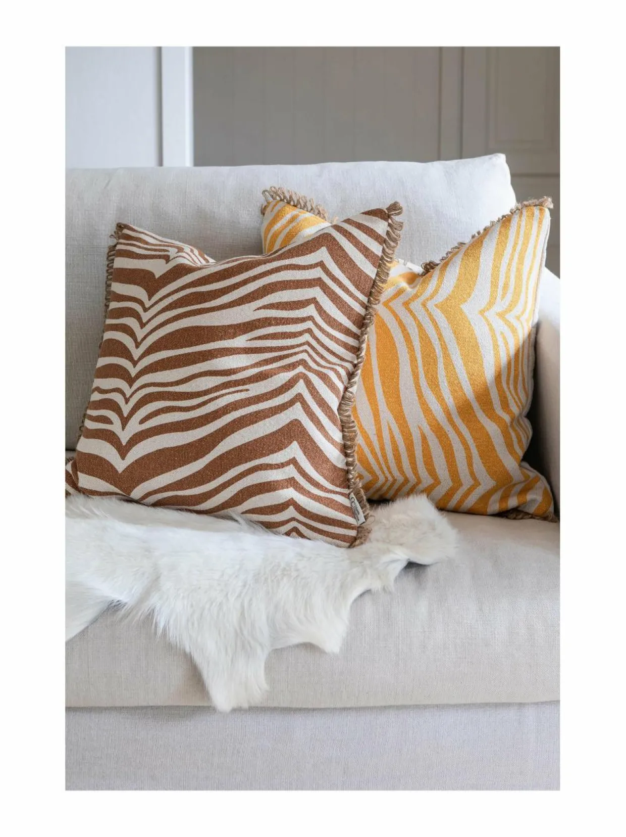 Classic Collectionin Zebra-tyyny tuo sisustukseesi ripauksen tyylikästä villieläintunnelmaa. Tyynyssä on elegantti seeprakuosi, joka on painettu käsin laadukkaalle puuvillakankaalle. Tyynyn reunaa kiertävät juutista valmistetut hapsut, jotka lisäävät luonnonläheistä ja persoonallista ilmettä.
