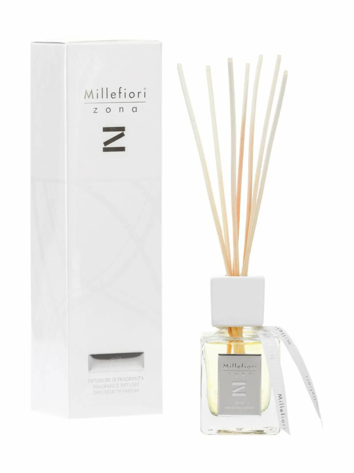 Tuoksun voimakkuuden voi sopeuttaa huoneeseen diffuuseriin asetettavien puutikkujen määrää muuttamalla. Pakkauksessa on elegantti lasipullo sekä puiset tuoksutikut.Materiaalituoksu, vesi ja alkoholi Pakkauskoko100 ml tai 250 ml TuotesarjaZona ValmistusmaaItalia AvainsanatMillefiori, huonetuoksu, diffuuseri, neilikka, sitrus,