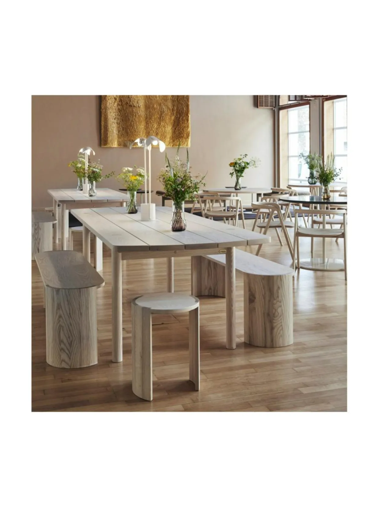 Joanna Laajisto suunnitteli tämän viehättävän massiivisaarnisen kalusteen alunperin osaksi Turun saaristossa sijaitsevan Villa Airisto -majatalon sisustusta. Saaristolaisuus näkyykin harkitussa muotokielessä, joka korostaa kauniisti jakkaran jalkarakenteen epäsymmetristä muotoa ja antaa tilaa puun luontaiselle ilmeelle.