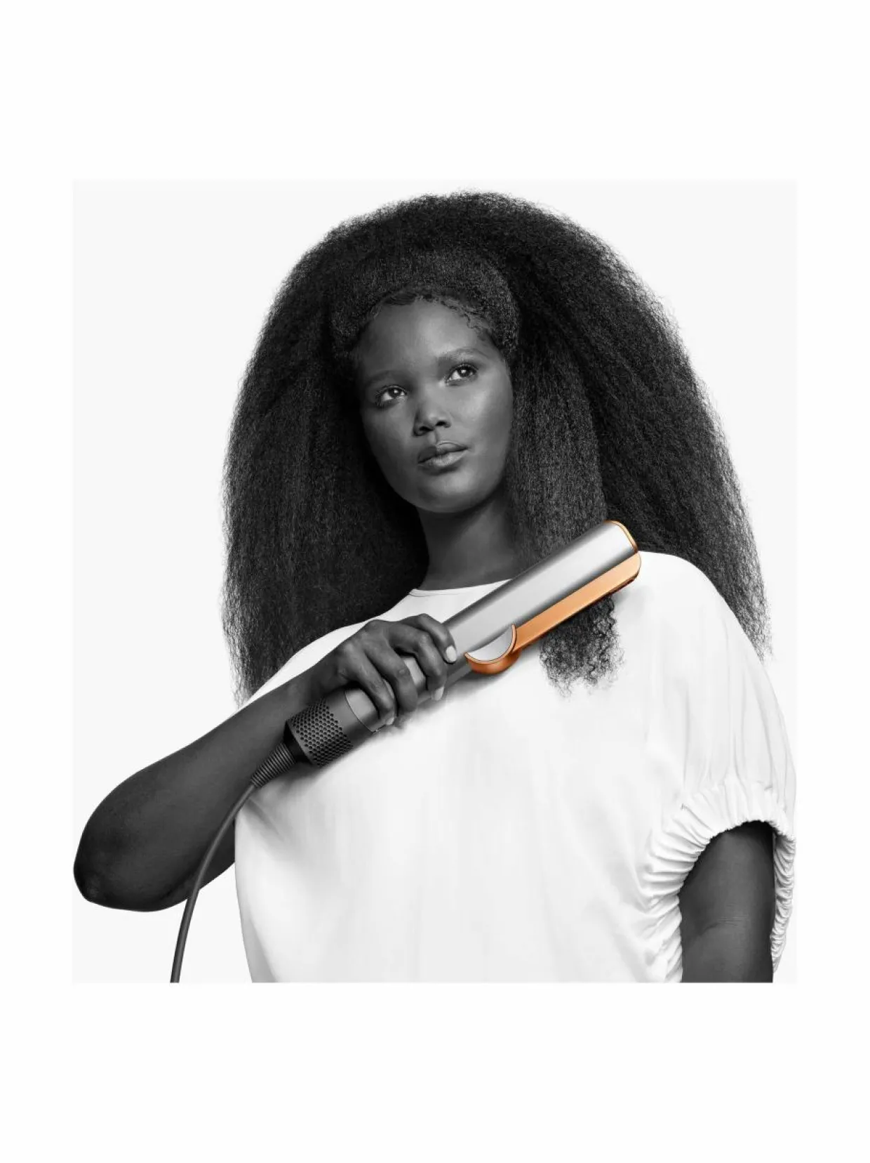 Ilmavirta ohjataan alaspäin 45°:een kulmassa luomaan tarvittava paine hiusten kohdistamiseksi sileän tyylin luomista varten – vähemmän vaurioita ja katkeilua.