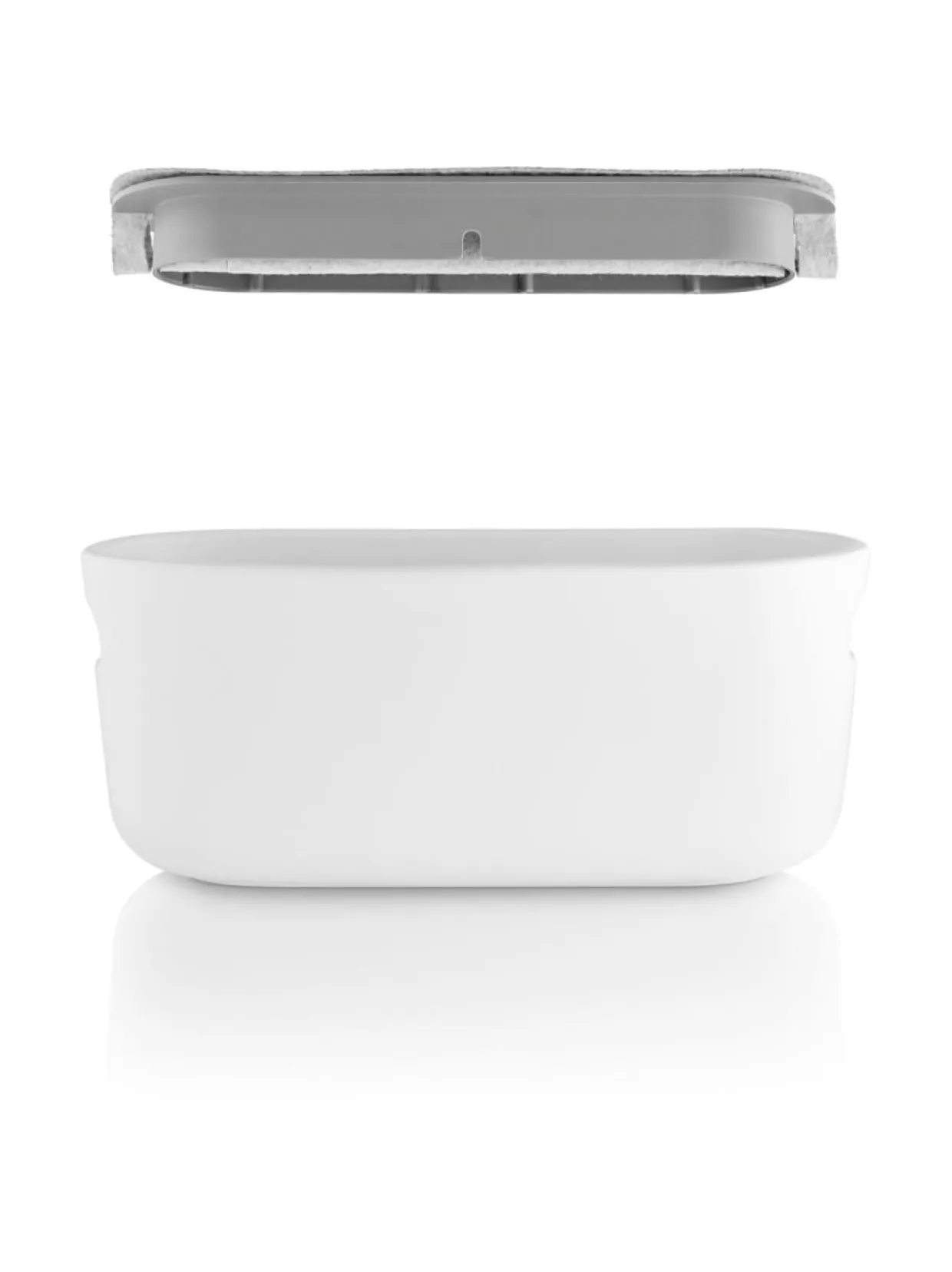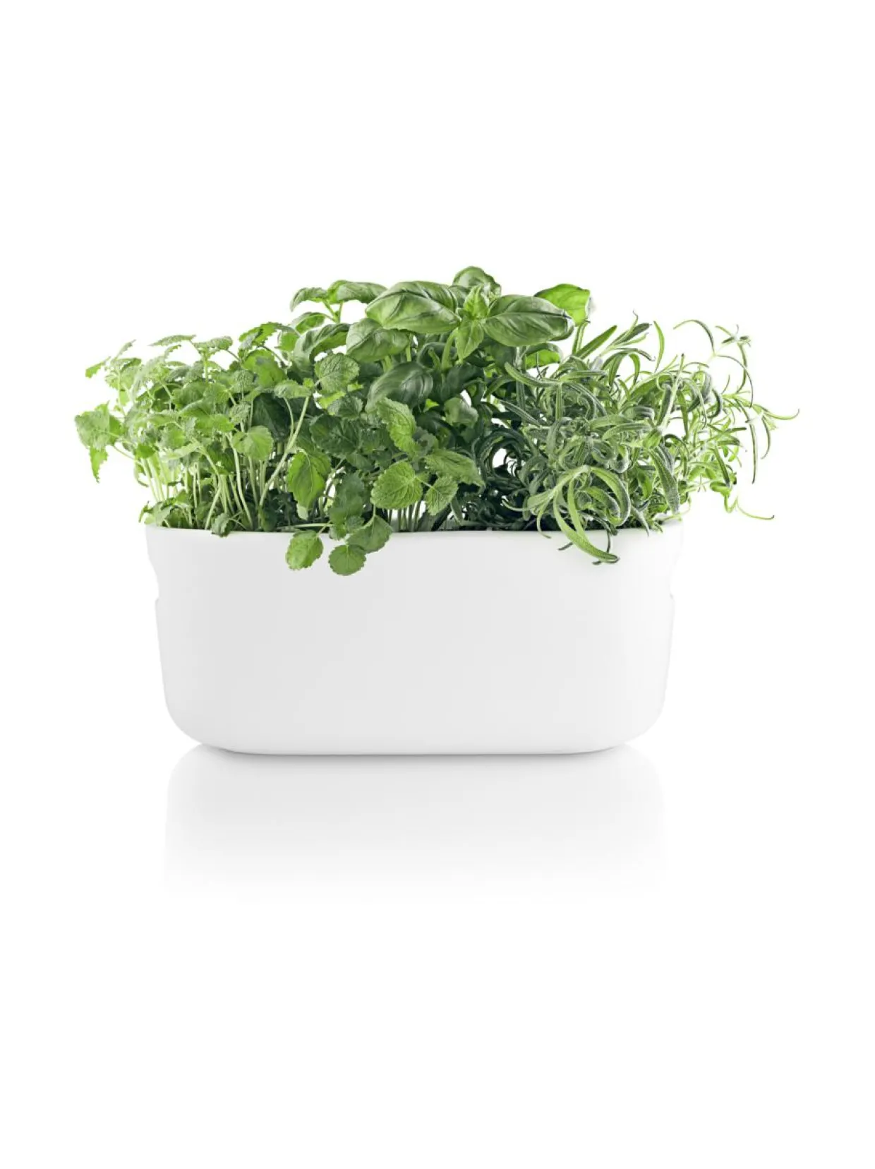 Eva Solon keraamisessa yrttilaatikossa on tilaa useammalle ruukulle, joten siihen saa koottua näyttävän kokonaisuuden erilaisia yrttejä niiden omissa ruukuissa. Yksinkertainen altakastelujärjestelmä perustuu kapillaari-ilmiöön ja sen avulla yrtit pystyvät ottamaan juuri tarvitsemansa määrän vettä 500 ml:n säiliöstä laatikon pohjalta. Näin kastelun tarve vähenee ja yrtit pysyvät elinvoimaisina, vaikka kukaan ei olisi muutamaan päivään kotona niistä huolehtimassa. Kädensijojen ansiosta laatikko on helppo siirtää esimerkiksi keittiöstä parvekkeelle ja takaisin. Soveltuu sekä sisä- että ulkokäyttöön, mutta vain lämpötilan ollessa plussan puolella. Kapillaariselle kankaalle suosittelemme käsinpesua haalealla vedellä, mutta kaikki muut osat voi pestä astianpesukoneessa.