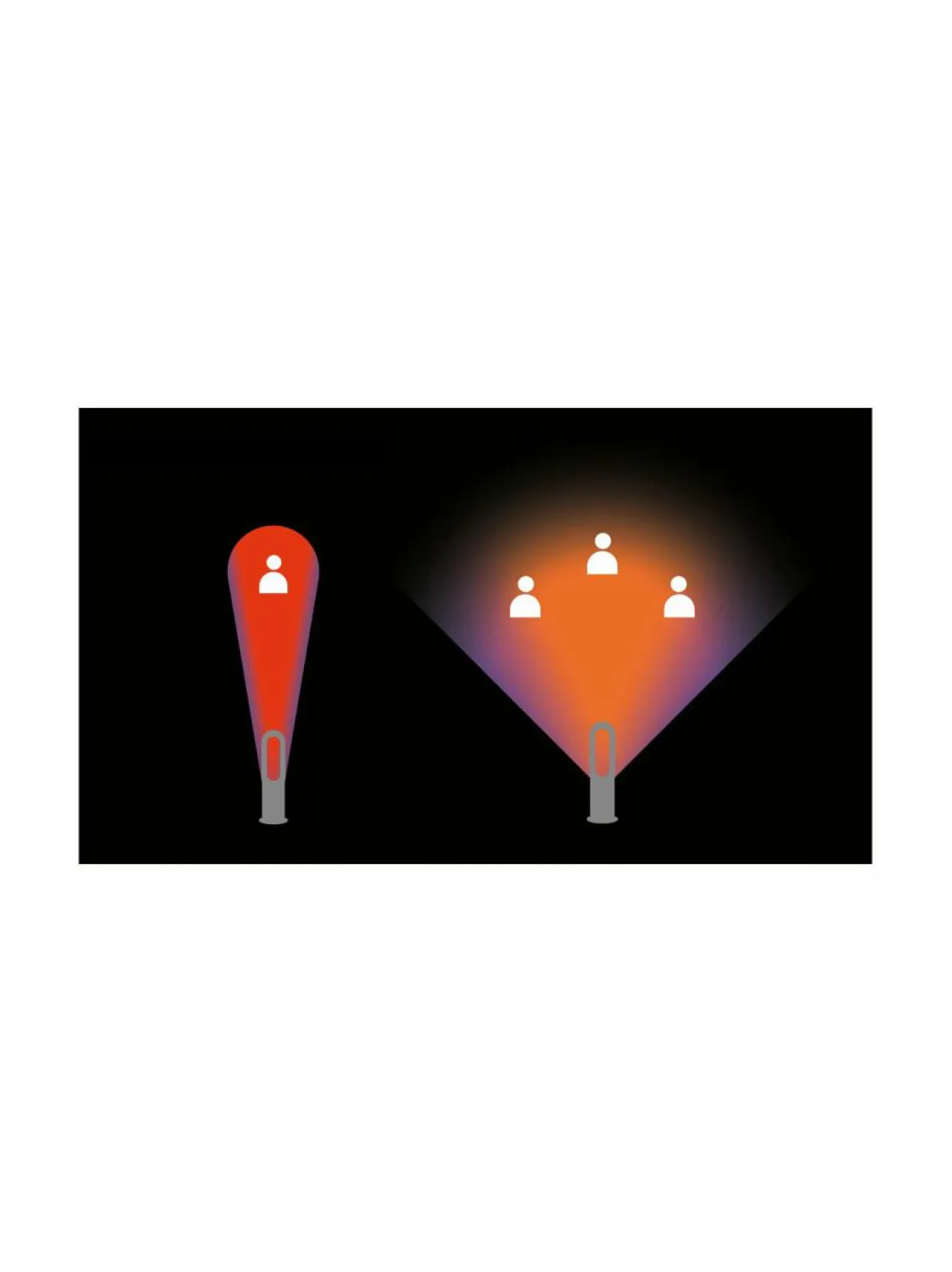 - Oskillointiohjaus. Suuntaa ilmavirran ympäri huonetta yhdellä kosketuksella. Oskilloi 70 asteen kulmassa. Ohjautuu koko huoneeseen. Testattu lämmityskyvyn osalta 35 m³:n kokoisessa huoneessa.