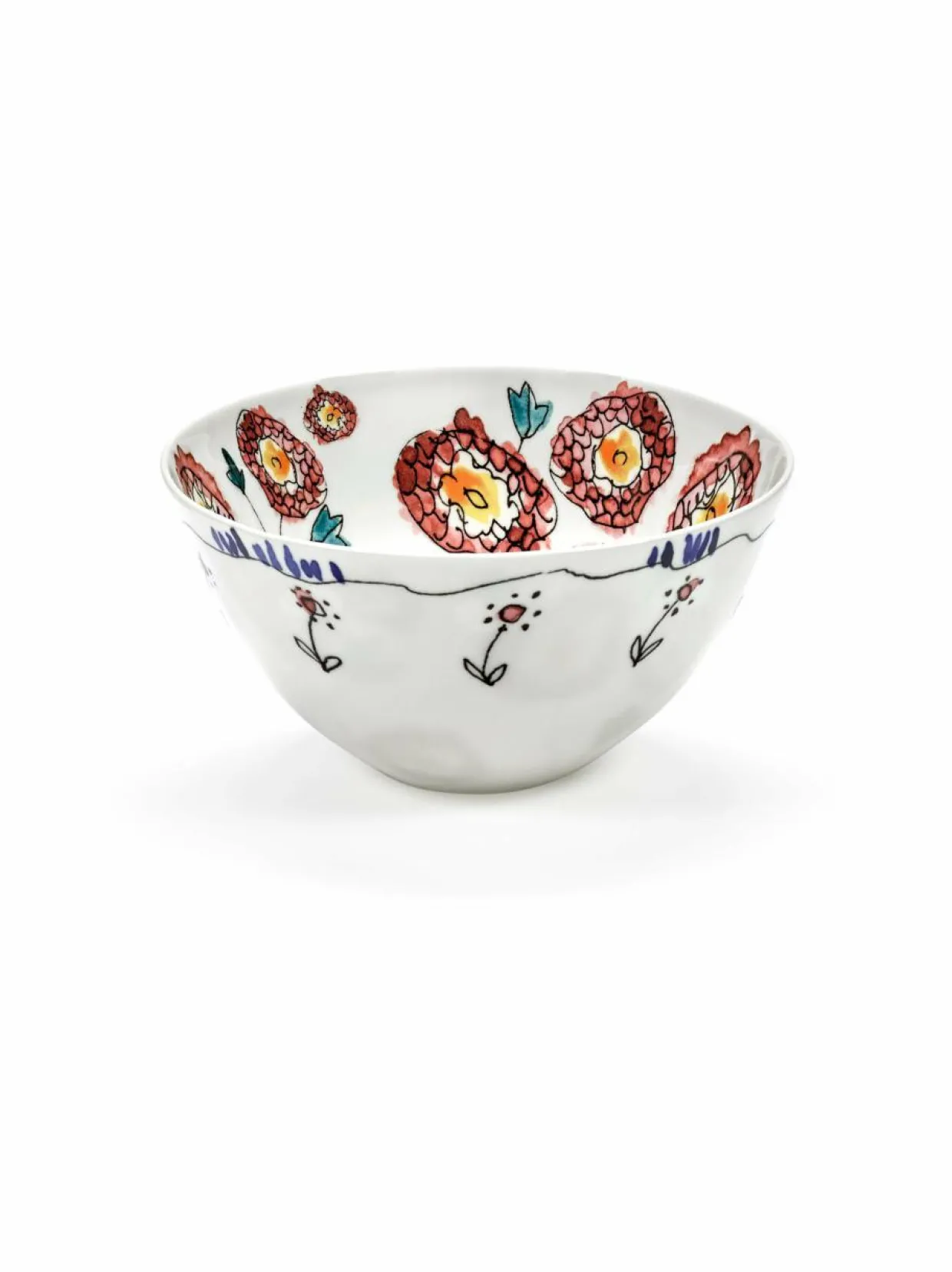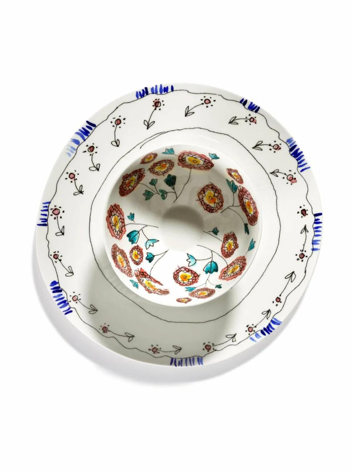 Serax ja Marni tuovat markkinoille tyylikkään, 120-osaisen posliiniastiasetin, joka juhlistaa italialaisen muotitalon taiteellista visiota. Marnin luova johtaja Francesco Risso suunnitteli kukka-aiheen, joka on saanut inspiraationsa luonnosta. Tarroja käytetään kuvion kiinnittämiseen hienoon luuposliiniin, jonka jälkeen se lasitetaan, jotta se kestää kulutusta. Lautasten, kulhojen, kuppien, lautasten ja teekannujen hieman epäsymmetriset muodot vain korostavat käsintehdyn posliinin laatua.- Settiin kuuluu kaksi kappaletta kulhoja.