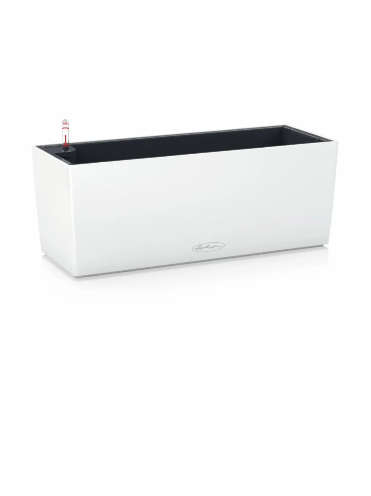 Vesitason ilmaisin kertoo, milloin on aika täyttää säiliö.Tuotenumero1360267 MateriaaliKierrätysmuovi VäriVALKOINEN Koko50x19cm, korkeus 19cm AvainsanatRuukku, kierrätysmuovi, altakastelu, moderni,