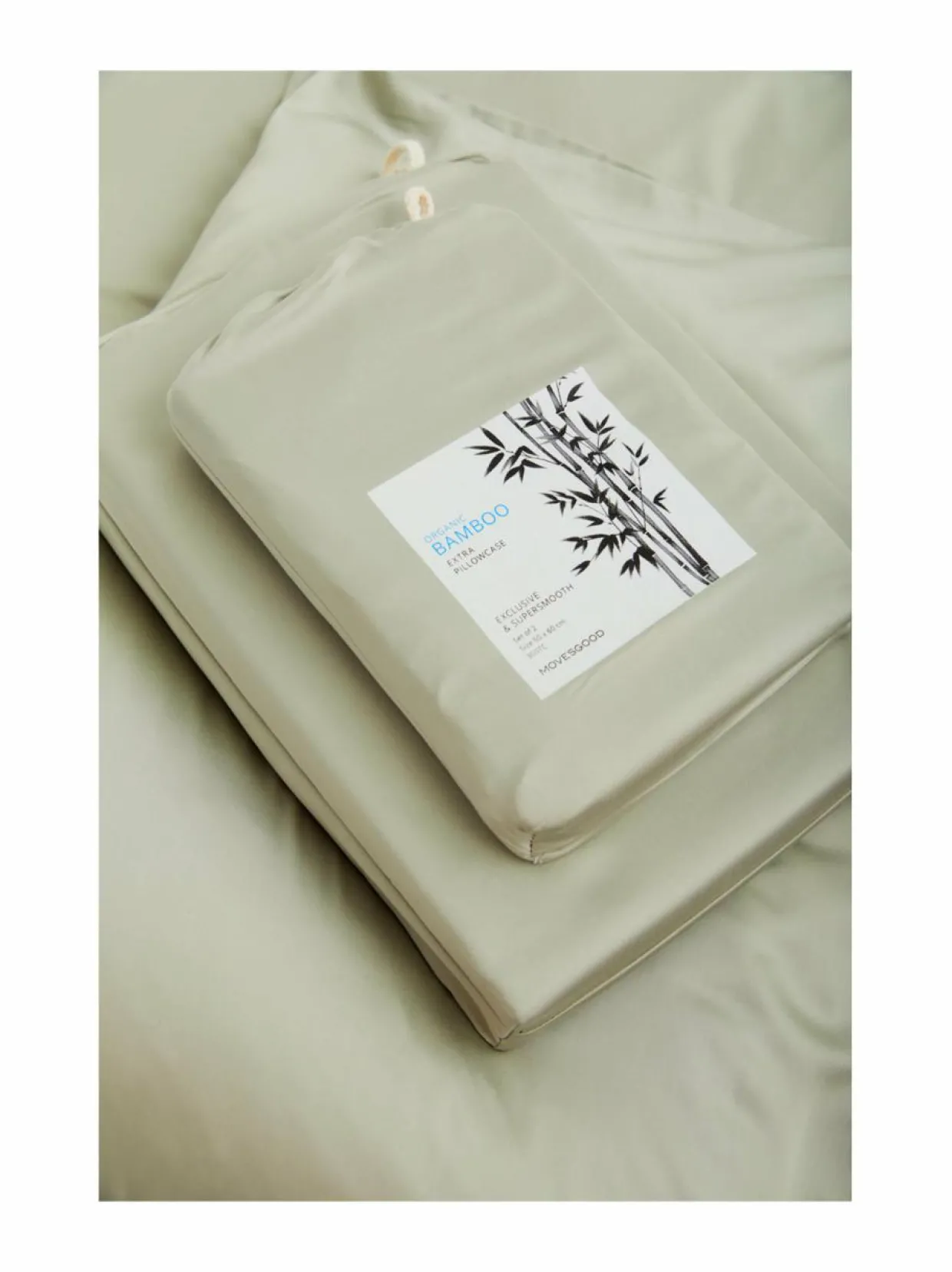 Movesgood Bamboo -tyynyliinan materiaalina on käytetty silkinpehmeää bambulyocellia, joka sopii erityisesti myös herkälle iholle, on hengittävää ja auttaa säätelemään kehon lämpötilaa.
