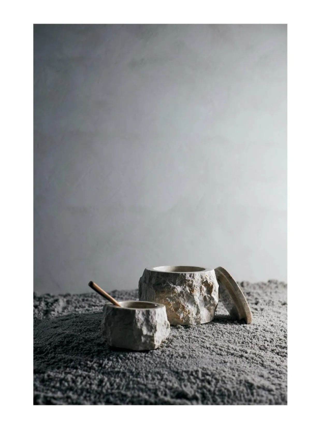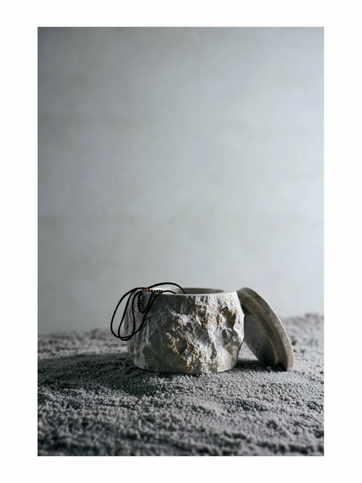 Batu-rasia on valmistettu Indonesian vuoristoista peräisin olevasta marmorista. Rustiikkinen, kannellinen Batu-koristerasia on valmistettu käsin ja sen nimi on saanut inspiraatiota sen veistoksellisesta ilmeestä – batu tarkoittaa indonesialaisian kielessä kiveä. Kaunis marmorinen koristerasia toimitetaan yhdessä kannen kanssa, joka on sileäpintainen ja joka korostaa marmorin elegantteja yksityiskohtia. Batu-koristerasiaa voi käyttää myös elintarvikkeiden säilytykseen. Suosittelemme kuitenkin, että sitä ei käytetä korkean happamuuden omaavien tuotteiden, kuten sitrushedelmien, säilytykseen, koska hapan neste voi vahingoittaa pintaa ja kiveä. Batu-koristerasia on ainutlaatuinen ja väriltään luonnollisen marmorikiven sävyinen, ja siksi se vaihtelee muodoltaan ja ulkonäöltään. Batu-koristerasiaa voi käyttää korujen säilyttämiseen kylpyhuoneessa tai osana pöytäkattausta, esimerkiksi välipaloille. Batu-koristerasia myydään yksittäin. Koristerasian mitat ovat 13 x 11 cm.