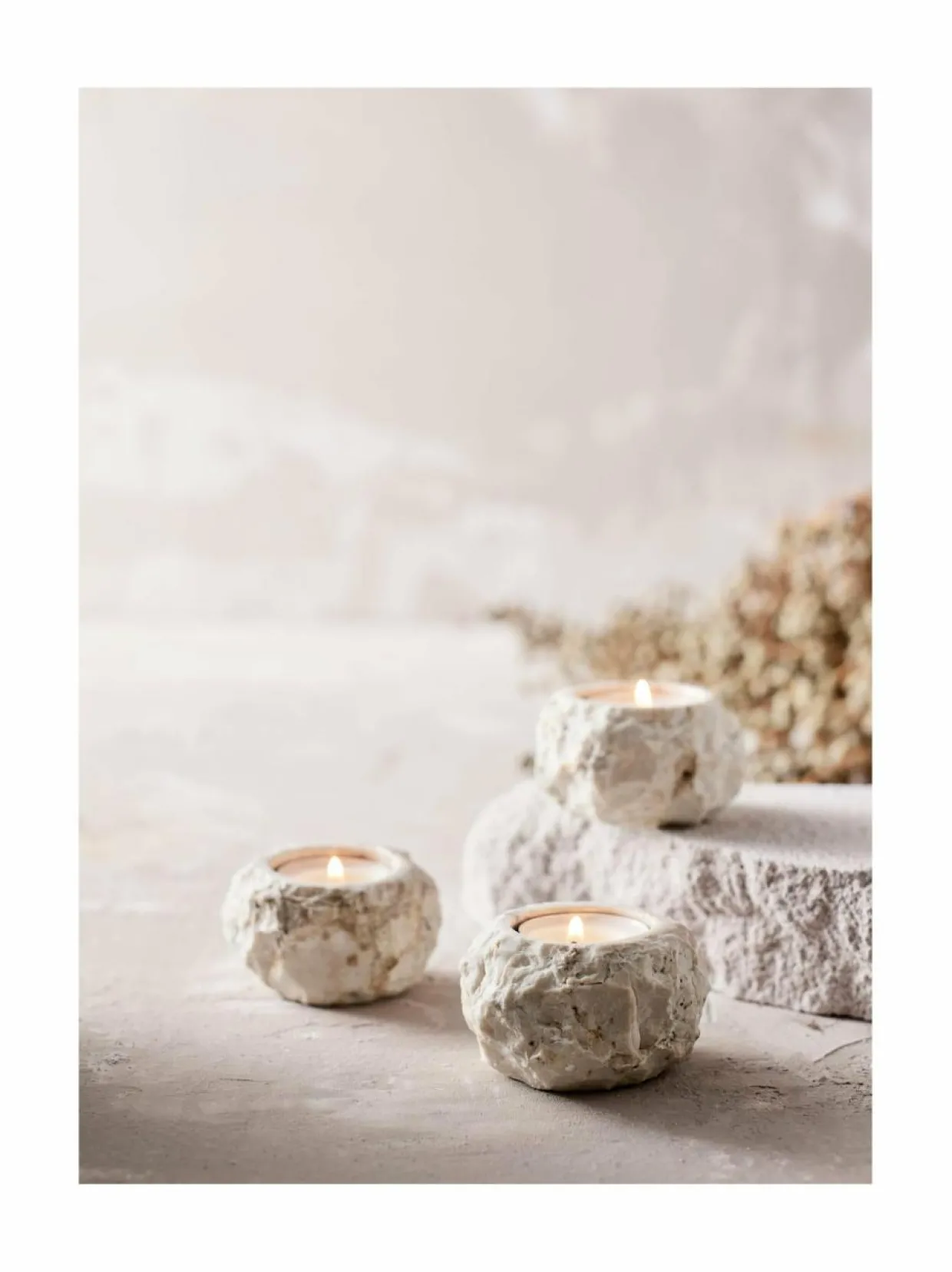 Batu-kynttilälyhty on valmistettu marmorista, joka on peräisin Indonesian vuorenrinteeltä. Marmori on tunnettu kauniista sävyistään ja vivahteistaan. Rustiikkinen tuikkukynttilälyhty on muotoiltu käsin. Batu-nimi on saanut inspiraationsa sen veistoksellisesta ilmeestä ja se tarkoittaa kiveä indonesian kielessä. Jokaisessa lyhdyssä on oma, ainutlaatuinen ilmeensä marmorikiven lunnollisen vaihtelun ansiosta. Kynttilänjalka tuo hehkua sisustukseesi. Batu sopii ikkunalaudalle, kylpyhuoneeseen tai pöytäasetelman osaksi luomaan viihtyisää ja ylellistä tunnelmaa. Batu-teekynttilälyhty myydään yksittäin. Tuote on valmistettu 100 % marmorista. Koko: 7 x 4 cm