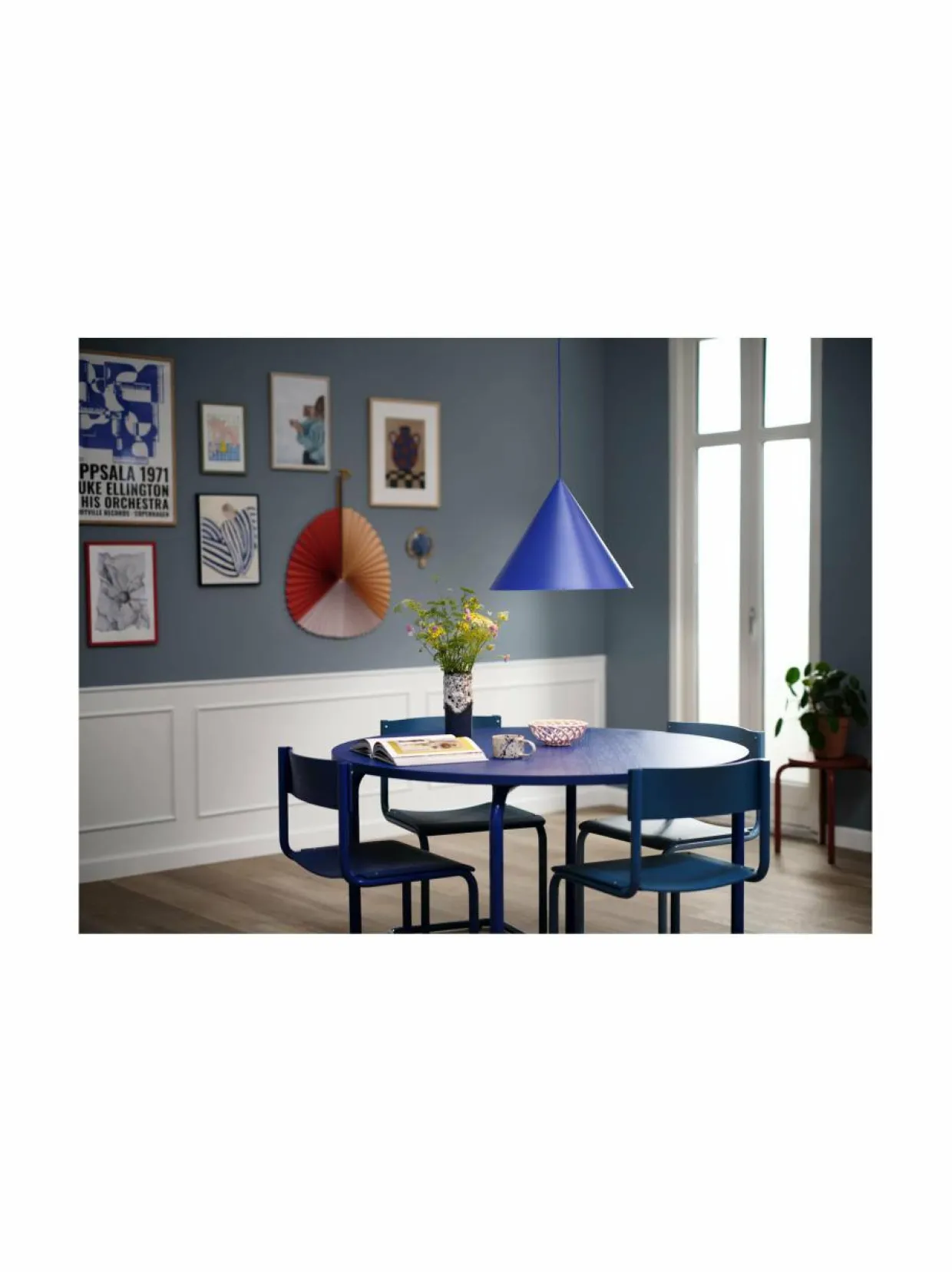 Tuotenumero170527598 MateriaaliMetalli ValmistusmaaKiina VäriATOMIC BLUE Koko46 x 46 x 35 cm AvainsanatFrandsen, kattovalaisin, metallivalaisin, kartio valaisin, kolmio valaisin, geometrinen valaisin, riippulamppu, lamppu, valaisin