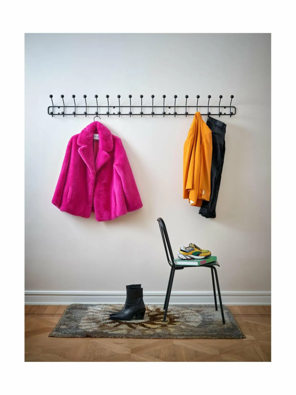 Maze Bill Horizongal -naulakossa on minimalistinen ja tyylikäs muotoilu. Metallin ja koivun yhdistelmä luo ajattoman kokonaisuuden, joka sopii niin eteiseen kuin makuuhuoneisiinkin. Tämä naulakko on runsaiden koukkujen ansiosta täydellinen ripustin kotiin, toimistoon tai vapaa-ajan asuntoihin. Se sopii erinomaisesti vaatteiden säilyttämiseen käytävällä tai tiloissa, joissa tilaa on rajoitetusti.