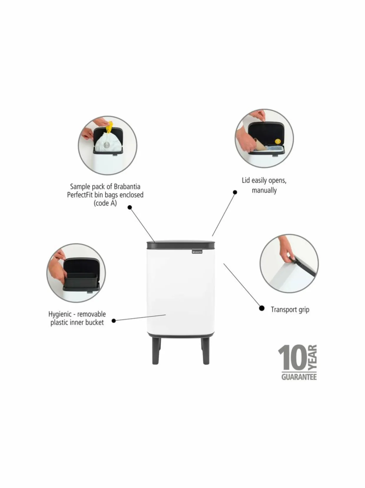 Tuotenumero163062495 MateriaaliMuovia ja terästä Pituus17.2 cm Leveys20 cm Korkeus36 cm Tilavuus4 l ValmistusmaaBelgia VäriWHITE Koko4 l Avainsanatbrabantia, bo, roskakori, roska-astia, jäte-astia, jätelajittelu