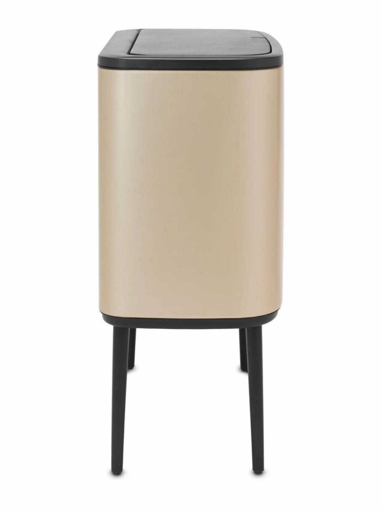 Brabantia Bo Touch Bin roska-astia on sekä käytännöllinen että kaunis. Valitse itsellesi sopiva kokonaisuus yhdellä, kahdella tai kolmella sisäastialla. Jalkojen tuoman korkeuden ansiosta ei tarvitse kumarrella ja lattiat on helppo puhdistaa myös alta. Muotoilunsa ansiosta Bo -roska-astia mahtuu tiiviisti seinää vasten. Kansi avautuu äänettömästi kevyestä kosketuksesta. Tyhjennys ja roskapussin vaihto sujuvat vaivattomasti ulosvedettävän muovisen sisäastian avulla, pussien reunat jäävät piiloon kannen alle. Pakkauksessa mukana myös näytekappaleita täydellisesti istuvista Brabantia PerfectFit- roskapusseista (koodi J ja X). Tuote on valmistettu ympäristö huomioiden, josta osoituksena on Cradle to Cradle- setifikaatti. 10 vuoden takuu. Valmistettu Belgiassa.