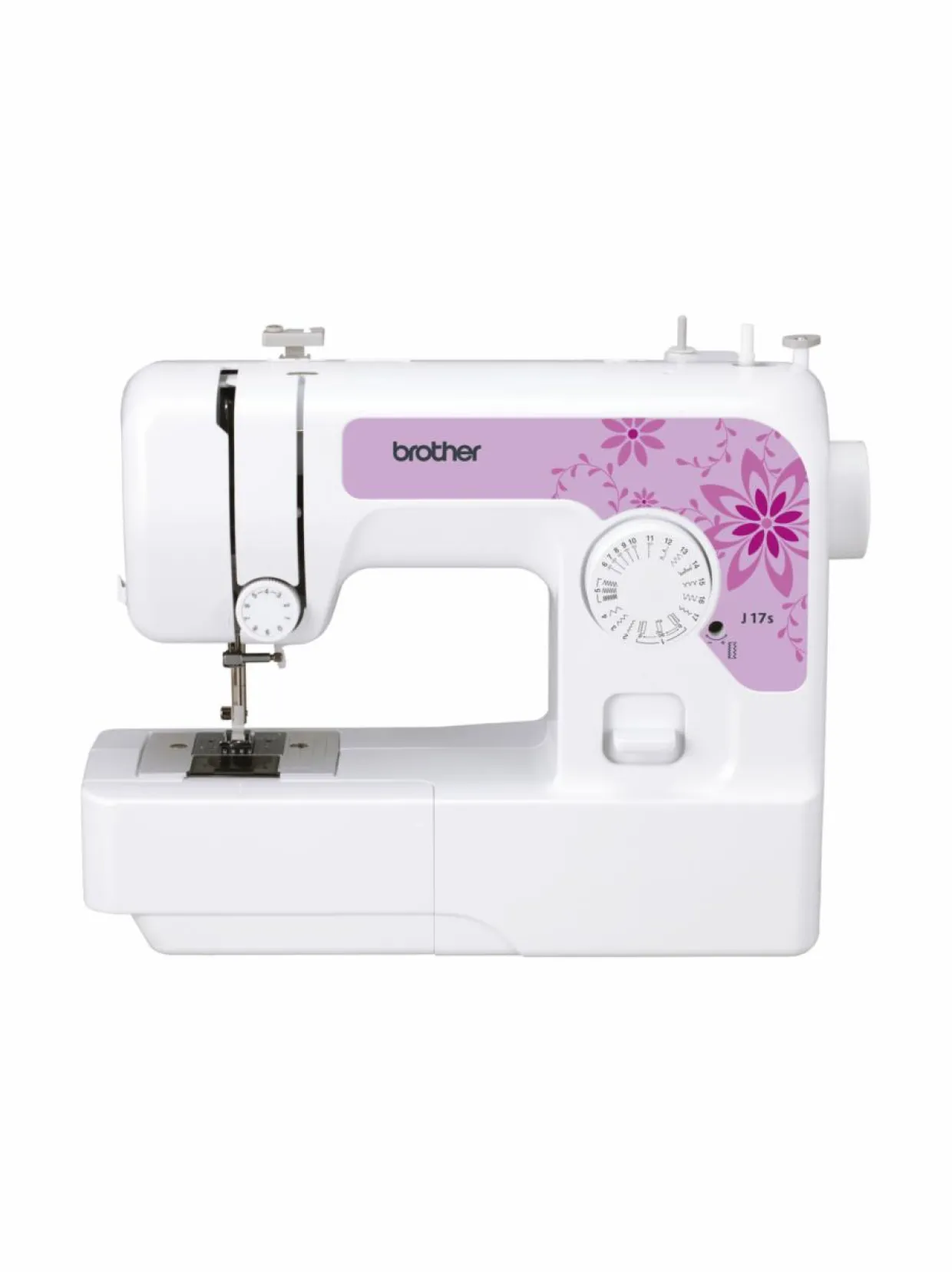 Brother J17 on erinomainen aloittelijan kone ja se sopii hyvin perus- ja korjausompeluun. Kone on helppokäyttöinen ja siinä on vahva kevytmetallinen runko. Selkeästä ommelvalintapyörästä saat hyvän otteen ja saat valittua haluamasi ohjelman 17 eri ommelvaihtoehdosta. Koneessa on vapaavarsi, jonka avulla lyhennät mm. housut tai hihansuut helposti. Nelivaiheisen napinläpiautomatiikan avulla kone ompelee kauniit napinlävet. Oma ommelvalinta löytyy myös joustavien kankaiden ompeluun kuten mekot tai verhot. Oikein suunnattu ja tehokas LED-valo auttaa ompelemaan tarkasti. Kevyt kone on helppo ottaa tarvittaessa esille kätevästä kantokahvasta nostaen.