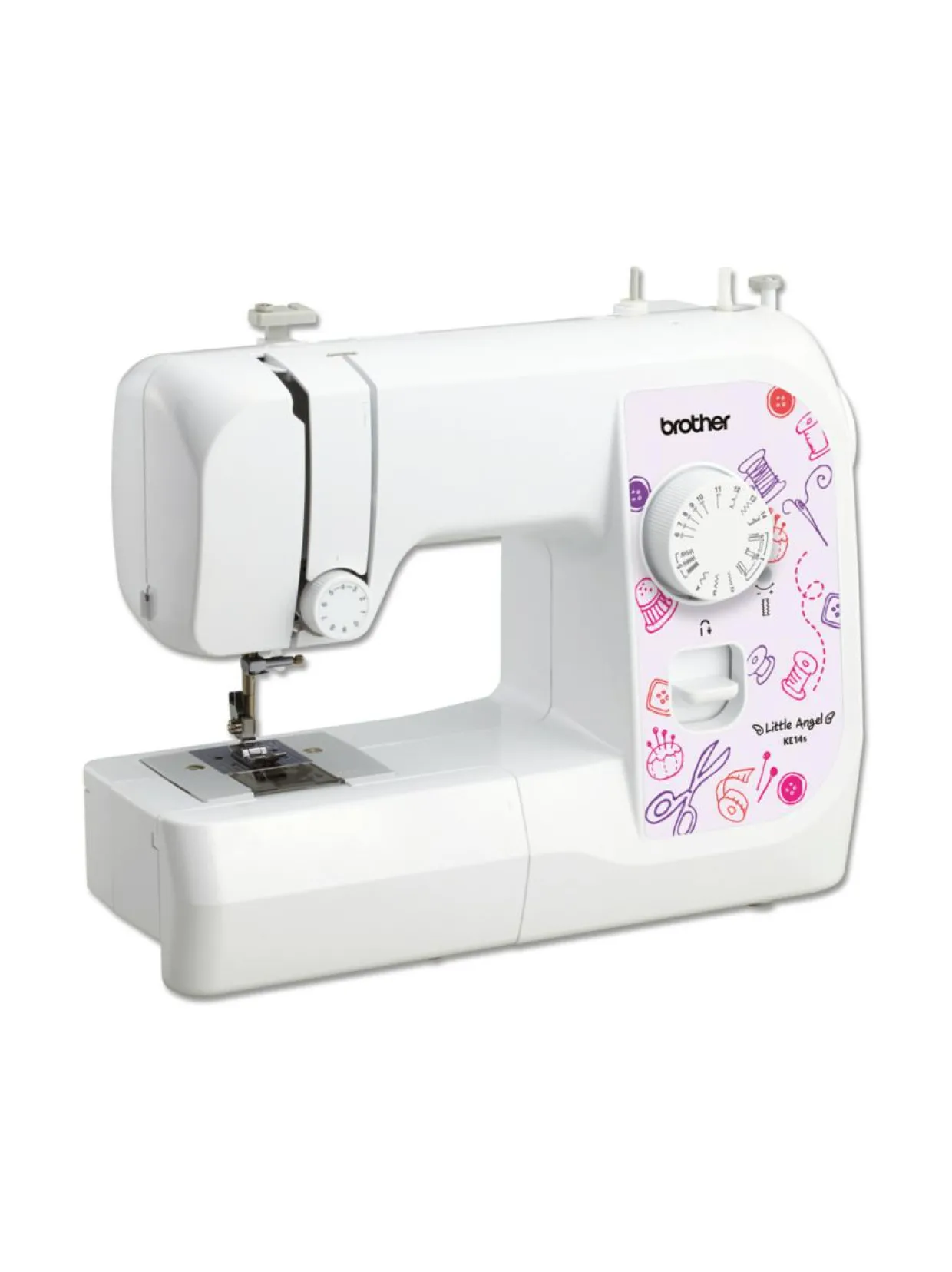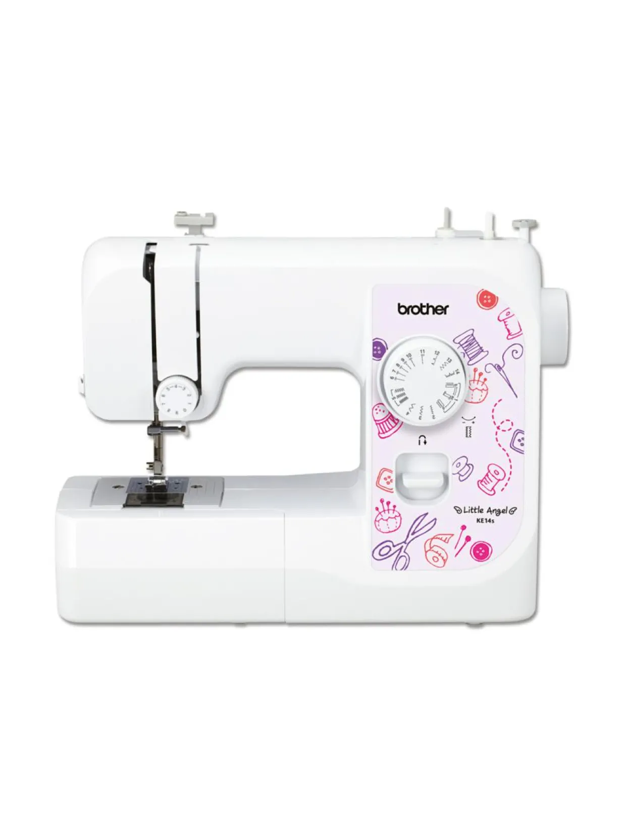 Brother KE14s on erinomainen aloittelijan ompelukone ja se sopii hyvin perus- ja korjausompeluun. Kone on helppokäyttöinen ja siinä on vahva kevytmetallinen runko. Selkeästä ommelvalintapyörästä saat hyvän otteen ja saat valittua haluamasi ohjelman 14 eri vaihtoehdosta.