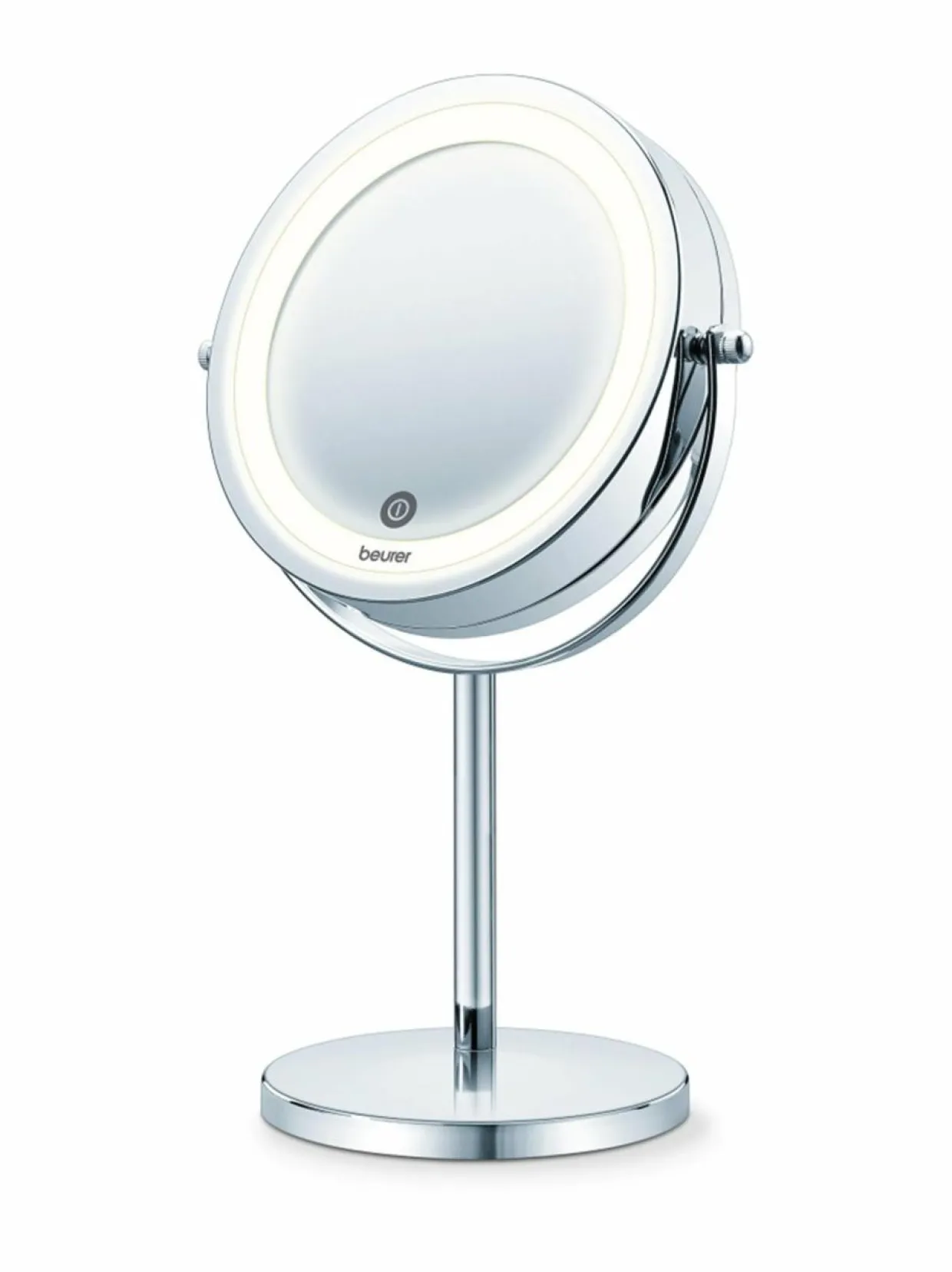 Paristokäyttöisessä meikkipeilissä on 7-kertainen suurennus kääntöpuolella. Miellyttävä LED-valo kytketään kosketussensorilla ja valon kirkkautta on mahdollista säätää. Virta katkeaa automaattisesti 15 minuutin kuluttua.