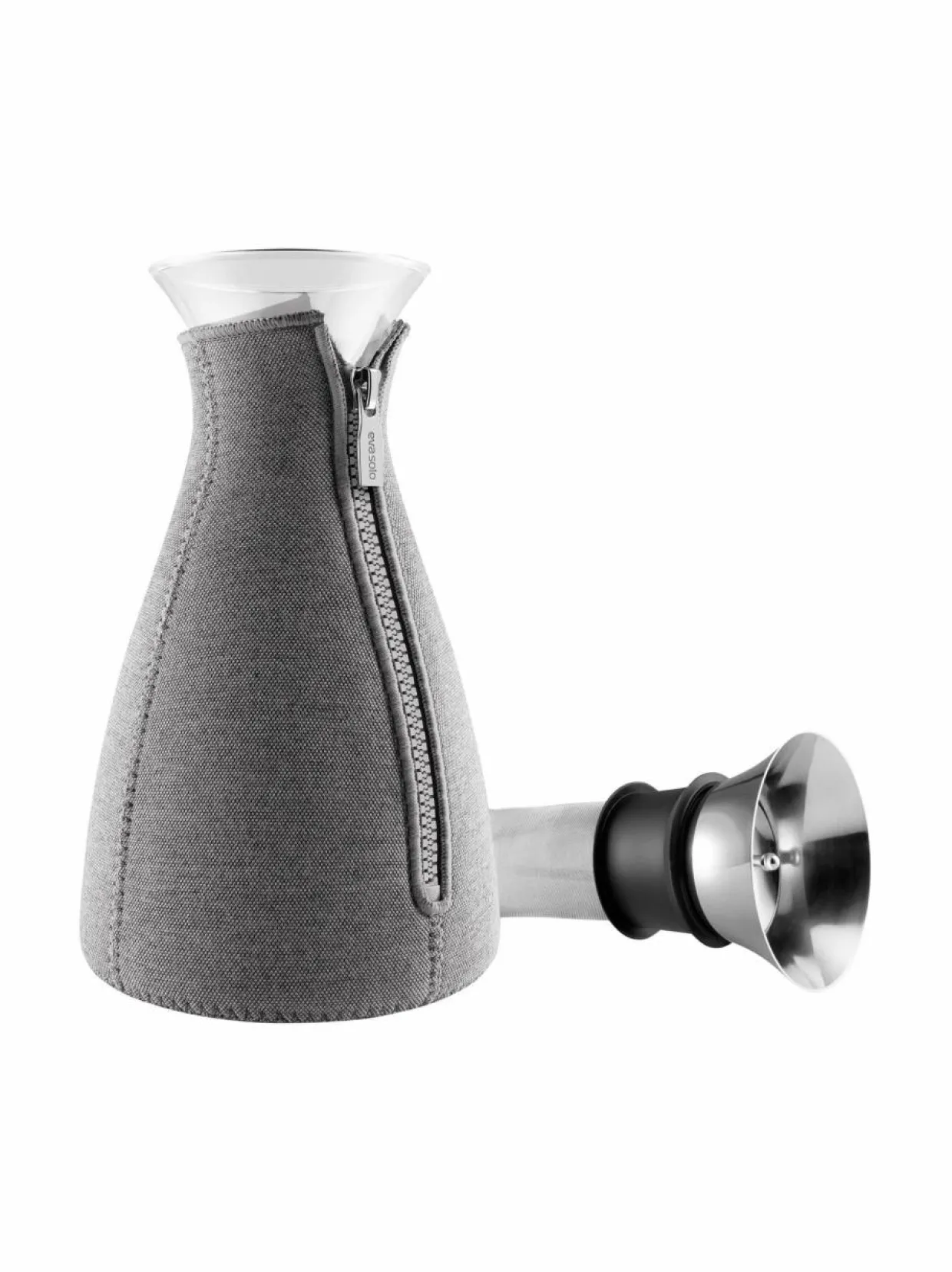 Minimalistisella ja laadukkaista materiaaleista valmistetulla Eva Solo CafeSolo-kahvinkeittimellä valmistat aromaattiset kahvit perinteisen yksinkertaisesti sekoittamalla kahvin ja veden keskenään. Kaadettaessa kahvi kulkee suodattimen läpi, joten kahvinpurut eivät pääse kahvikuppiin asti, ja patentoidun suutinosan avulla juoma ei läiky. Kahvi pysyy keittimessä lämpimänä neopreenisen takin ansiosta. Takkia lukuunottamatta kaikki keittimen osat voi pestä koneessa. Kerralla haudutat keittimessä 1 litran kahvia.