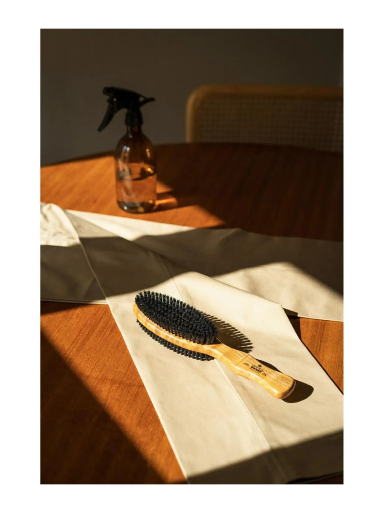 Tuotenumero1413690 MateriaaliTumma sianharjas, Kirsikkapuu Hoito-ohjeetPuhdista vaateharja aina tarvittessa sille tarkoitetulla puhdistuskammalla. Voit myös imuroida harjan tai huuhdella sen juoksevan veden alla. Jätä harja huuhtelun jälkeen kuivumaan harjakset alas päin ja kuivaa puinen runko. Voit käyttää pesuun tarvittaessa mietoa pesuainetta. Avainsanatvaatehuolto, vaateharja, villakangastakki, Arkivé Atelier