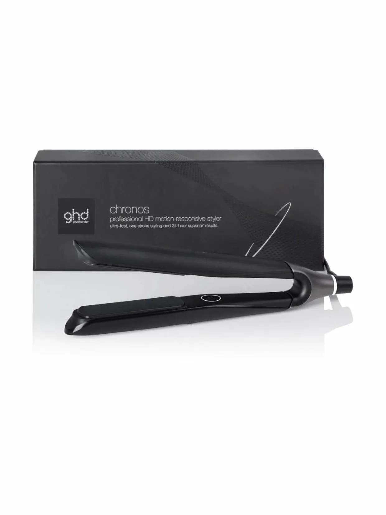 ghd:n Chronos-suoristusrauta on ammattimainen muotoilulaite, joka on kolme kertaa nopeampi ja sisältää HD motion-responsive™ -teknologian.Saat 24 tuntia kestävät muotoilutulokset yhdellä vedolla. Ghd:n edistynein muotoilurauta, joka sopii kaikille hiustyypeille.