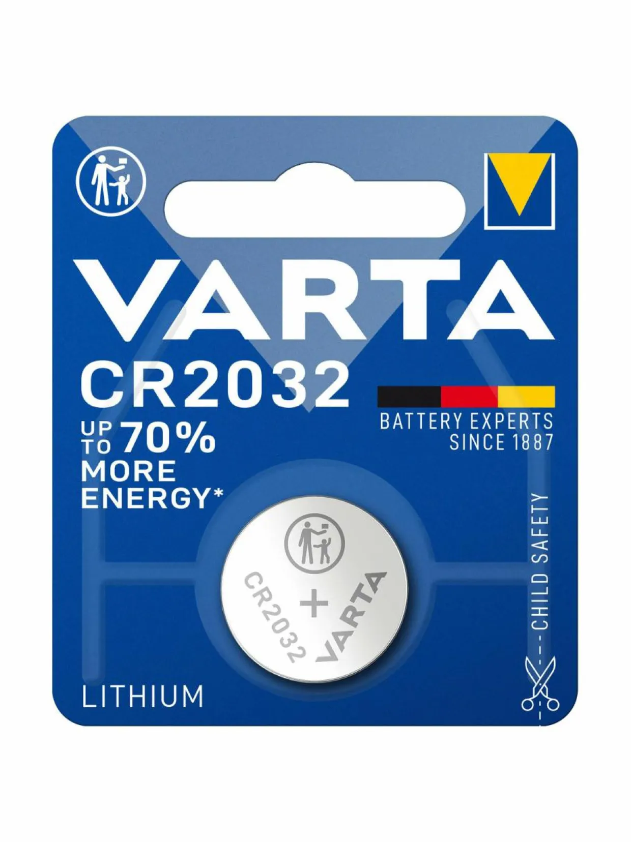 Pakkaus sisältää yhden jännitteeltään 3 V CR2032-nappipariston.