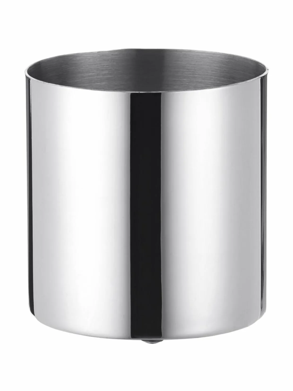 Tyylikäs Deco -hammasharjamuki on kiillotettua ruostumatonta terästä. Mitat ovat 8 x 8 cm.