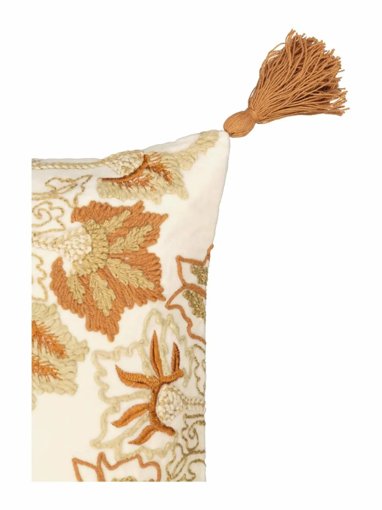 Villa Stockmannin Delft-tyynynpäällinen tuo kotiisi ylellistä ja eksoottista tunnelmaa. Tämä 30 x 50 cm kokoinen tyynynpäällinen on valmistettu pehmeästä puuvillasametista. Kauniit brodeeratut kuviot ja tyynynpäällisen neljässä kulmassa olevat koristeelliset tupsut lisäävät siihen persoonallisuutta ja tekevät siitä huomiota herättävän sisustuselementin.