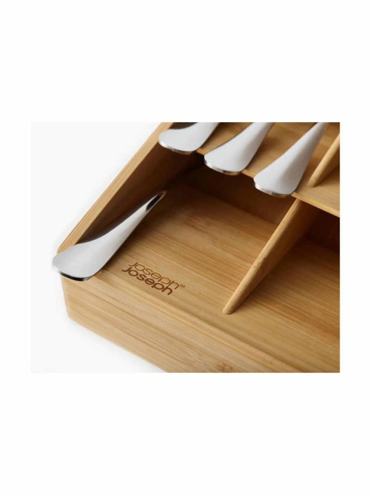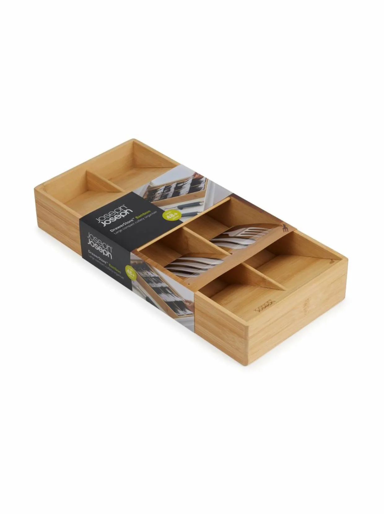 Joseph Josephin aterinlokerikko uniikilla muotoilulla on järkevä säilytysratkaisu ruokailuvälineille. Kompaktissa laatikossa aterimet pysyvät siistissä järjestyksessä tilaa säästäen. Valmistettu luonnollisesta bambusta. Teline pysyy hyvin paikallaan liukumattoman pohjan ansiosta.