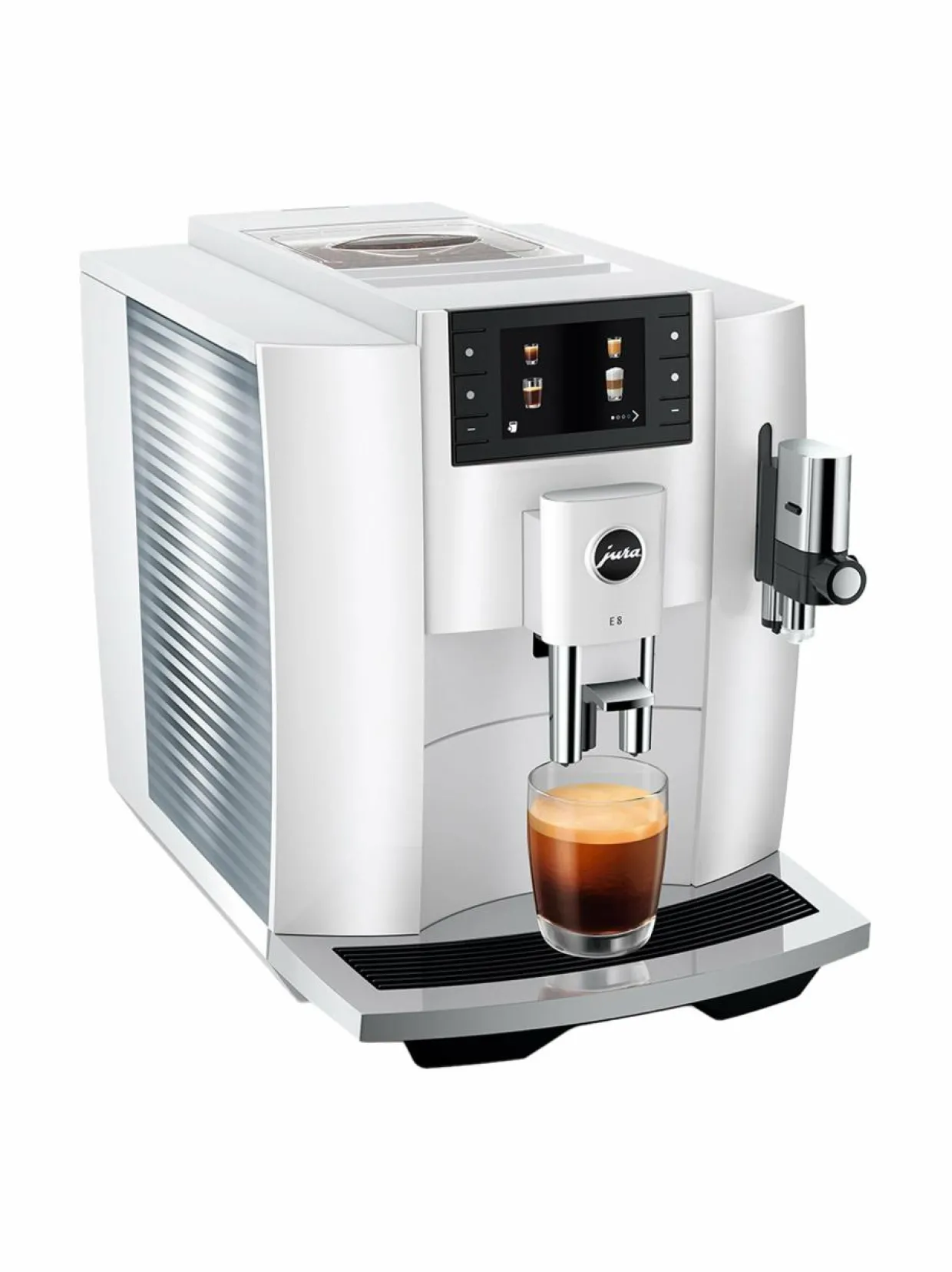 E8-kahvikoneen uusin sukupolvi täyttää kaikin tavoin ne suuret odotukset, jotka kohdistuvat JURAn kaikkein suosituimman kahvikonemallin uusimpaan versioon. Uskomattoman helppokäyttöinen laite, jossa yhdistyy herkulliset kahvinvalmistustulokset ja sulavalinjainen, moderni muotoilu.