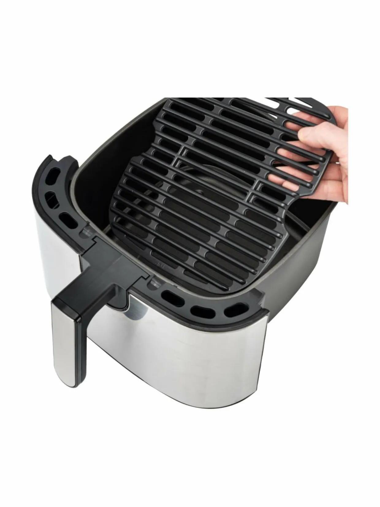 Lisäksi parilassa on tarttumaton pinnoite, joten rasvaa ei tarvita ja parila on erittäin helppo puhdistaa. Yksi air fryerin monista eduista on helppous. Täytä kulho tasaisesti raaka-aineilla sekä aseta lämpötila 40–220 asteeseen ja ajastintoiminto jopa 60 minuuttiin.Äänimerkki ilmoittaa, kun ruoka on valmis tai kun on aika sekoittaa.- Laite on helppo puhdistaa, sillä kaikki irrotettavat osat ovat konepestäviä.