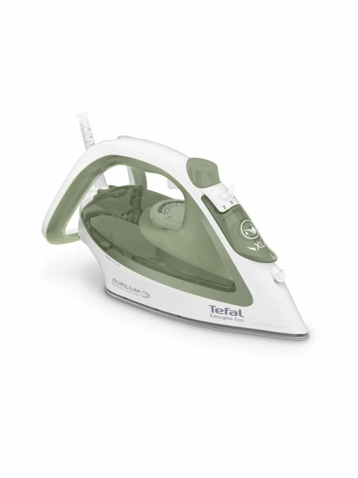 - Durilium AirGlide® -pohja takaa Tefalin parhaan liukuvuuden. Durilium-pohja on erittäin naarmunkestävä, jopa silitettäessä vetoketjujen kaltaisia hankalia kohtia. Durilium-teknologia mahdollistaa myös höyryn optimaalisen jakautumisen koko pohjan alueelle.
