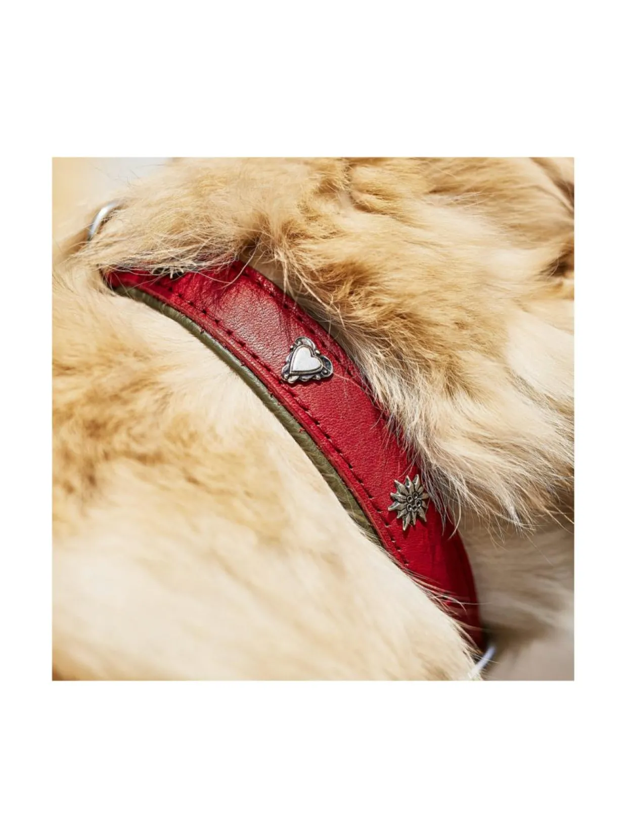 Upeassa punaisessa pannassa on täydelliset saumat, laadukkaat kiinnikkeet sekä kiinteä karbiini takaamassa turvallisuutta. Pyöreä, ommeltu, 3-suuntaisesti säädettävä talutushihna tarjoaa erityisen pehmeän tunteen taluttaessa. Vahvan ompelun lisäksi hihnan ydin on vahvistettu nailonilla lisäämään kestävyyttä. Kaulaa vasten olevan alapuolen samettisen pehmeä nupukkinahka sopii hyvin myös herkille koirille.