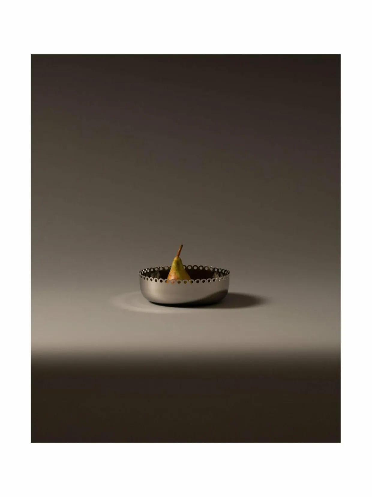 Kauniisti muotoiltu tarjoilukori uudesta il Tornitore Matto -sarjasta. Alberto Alessin suunnittelema astia liittyy hänen isoisänsä perinteisiin metallintyöstötaitoon. Valmistettu hopeanvärisestä ruostumattomasta teräksestä, joka on huolellisesti kiillotettu. Pyöreä muotoilu ja kohotettu reuna tekevät tästä tarjoiluastiasta upean keskikohdan kattaukseen tai koristeeksi. Sen rei’itetyt yksityiskohdat tekevät siitä vieläkin mielenkiintoisemman ja korostavat käsityötaidon huolellisuutta.