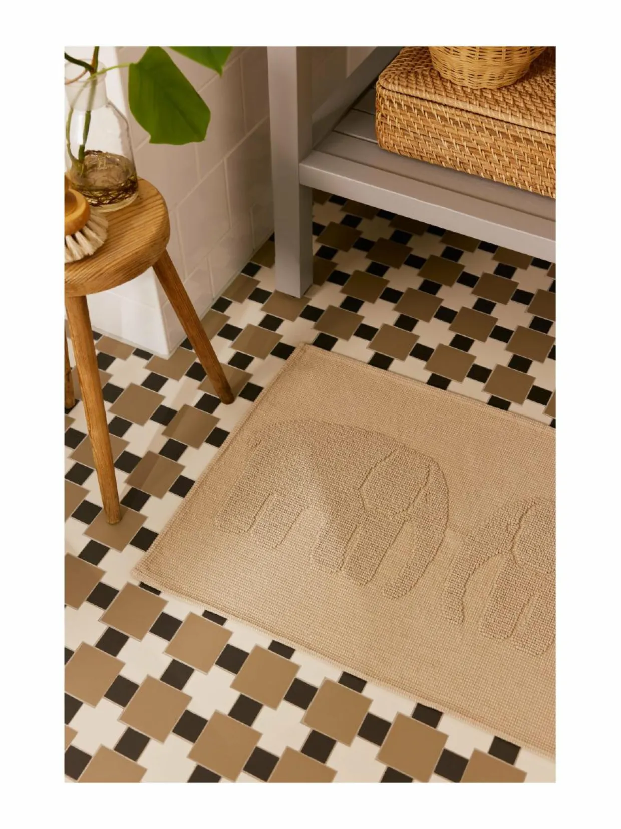 Elefantti-kylpymatossa klassikkokuosi kohtaa arjen mukavuuden. Elefantti-kylpymatto on valmistettu 100 % pehmeästä puuvillasta, ja sen nyppyläpintainen rakenne hellii jalkapohjia jokaisella askeleella. Matto tuo kylpyhuoneeseen sekä käytännöllisyyttä että tyylikkyyttä. Kylpymattoa koristaa Laina Koskelan suunnittelema ikoninen Elefantti-kuosi, joka on ilahduttanut suomalaisia kodeissa jo 1960-luvulta lähtien. Suomessa suunniteltu matto on ajaton valinta, joka yhdistää laadukkaan materiaalin ja klassisen muotoilun.