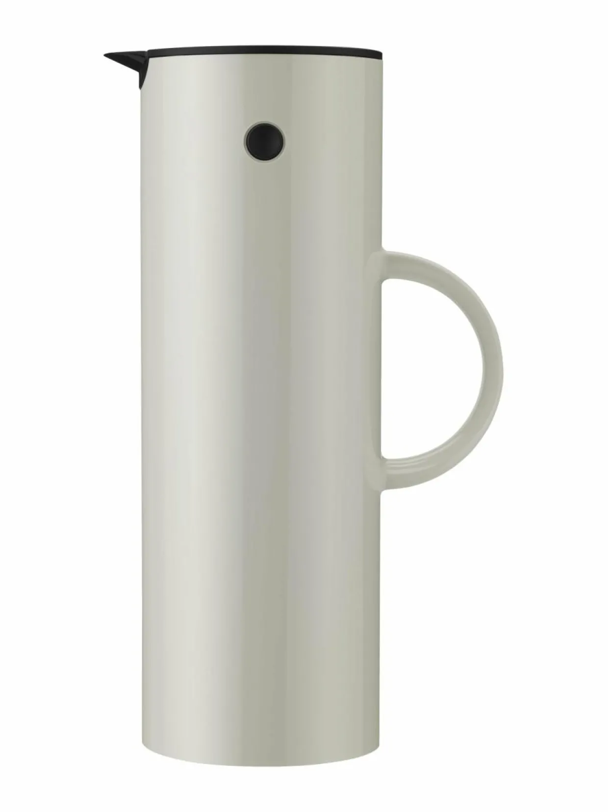Erik Magnussenin suunnittelema klassinen EM77-termoskannu pitää juomat halutun lämpöisinä. Kannussa on pyöreä kahva ja kierrekorkki.