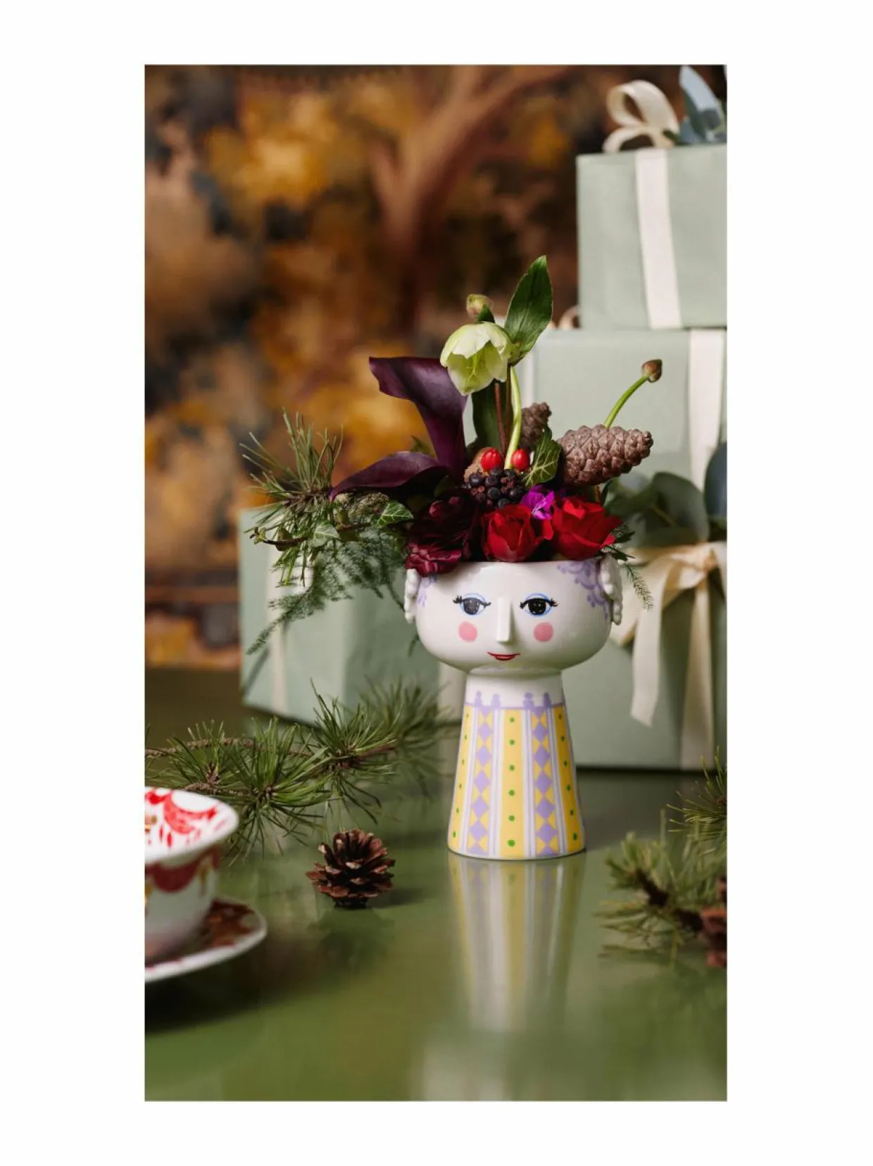 Bjørn Wiinbladin Eva-maljakko sopii täydellisesti kauniille kukkakimpuille tai yhdelle suurelle kukalle. Maljakko on valmistettu kiiltävästä posliinista ja siinä on värikäs koristelu, inspiraationaan Bjørn Wiinbladin alkuperäiset Eva-maljakot, joissa oli leveä suuaukko ja kartiomainen alaosa. Bjørn Wiinblad piirtänyt itse siihen upeat kasvot ja leninkimalli tulee myös hänen kuvituksistaan.