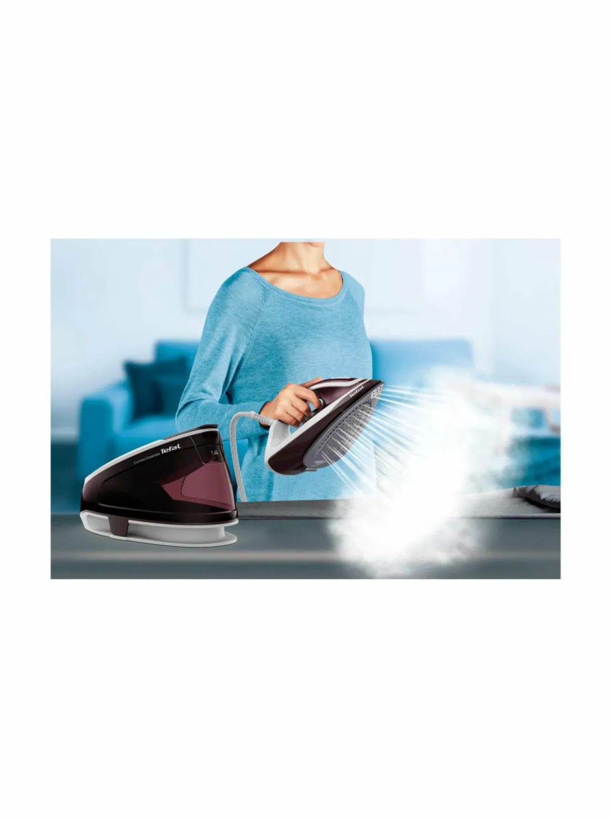 Tefal Express Essential Plus vähentää silittämiseen kuluvaa aikaa jopa 30 % verrattuna perinteiseen höyrysilitysrautaan. Express Essential Plus -höyrysilityskeskus tuottaa tehokkaasti jatkuvaa höyryä jopa 120 g/min, mikä tekee silityksestä entistä sujuvampaa. Korkea 5,5 baarin höyrynpaine silottaa vaatteet nopeasti. Lisähöyryn määrä on 320 g/min, minkä ansiosta höyry tunkeutuu nopeasti syvälle kankaaseen ja poistaa itsepintaisemmatkin rypyt ja taitokset, jopa paksuimmistakin kankaista.