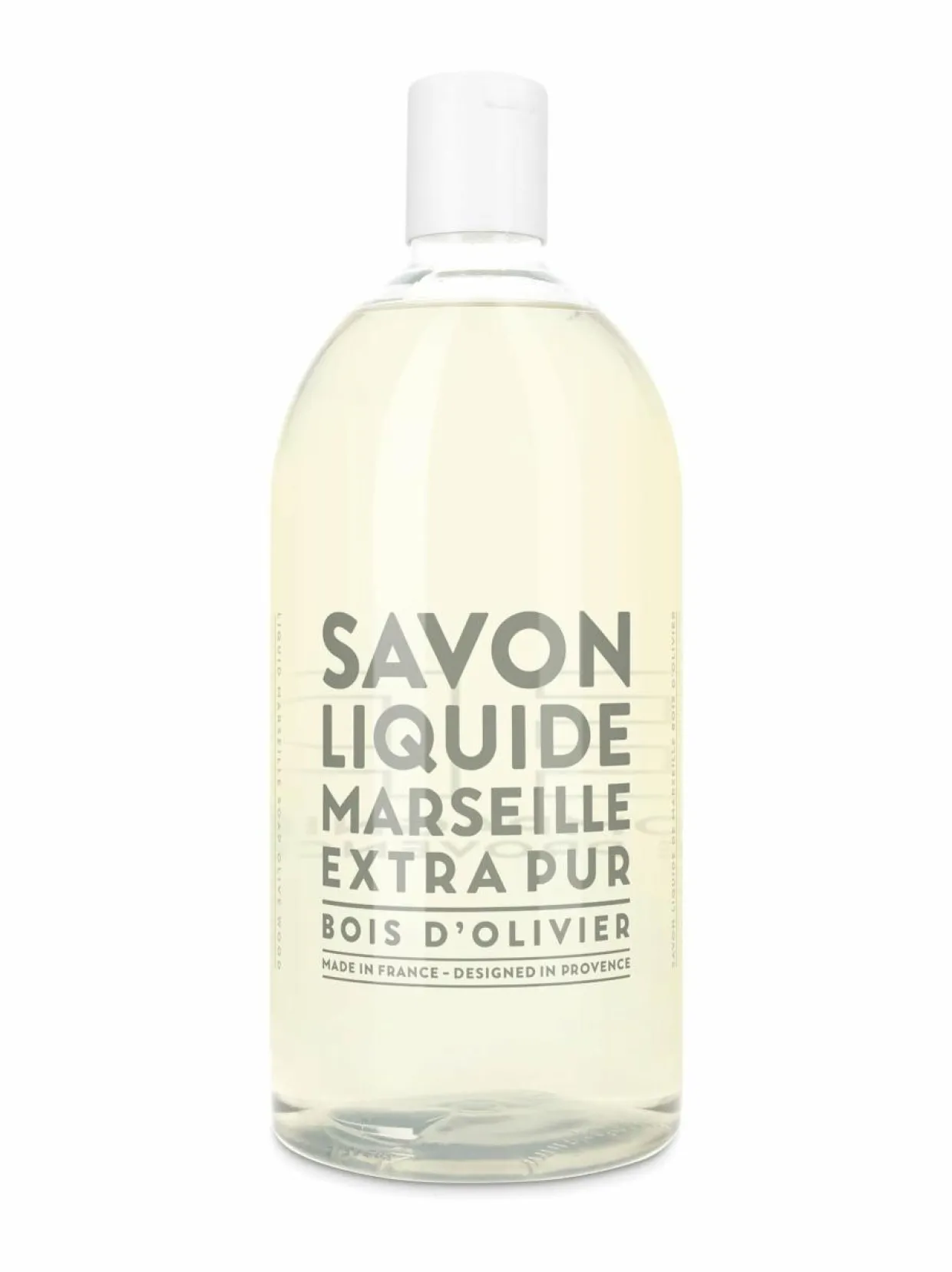 Extra Pur Olive Wood -nestemäisen marseillesaippuan tuoksu on pehmeä yhdistelmä auringon lämmittämää puuta ja sitrushedelmien raikkautta. Saippua on valmistettu perinteisellä menetelmällä keittopadassa. Valmistuksessa ei ole käytetty väriaineita, eläinrasvoja eikä pinta-aktiivisia aineita. Sisältää kosteuttavaa glyseriiniä.