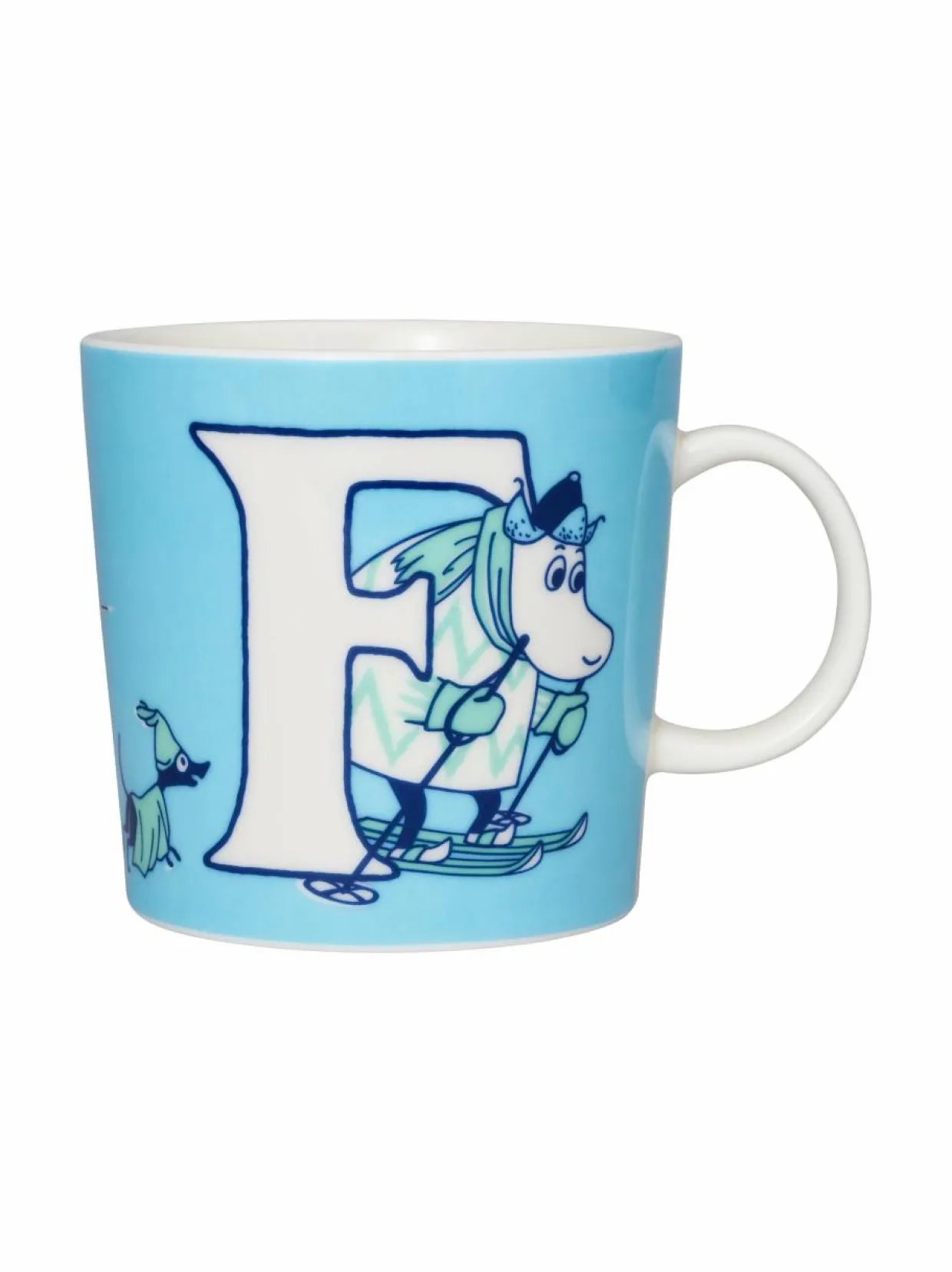 Moomin by Arabian Aakkoskokoelman mukit on koristeltu Muumi-kirjaimilla, joista jokainen voi valita omat nimikirjaimensa tai ilahduttaa päivän sankaria erityisesti hänelle valitulla mukilla. Myös mukin kääntöpuolen kuvitus on saanut inspiraationsa “Muumiperhe”-sarjakuvasta. Muumihahmot yhdessä kirjainkuvituksen kanssa muodostavat tarinallisen kokonaisuuden. Mukit ovat osa Muumien ABC -kokoelmaa, jolla Muumit muistuttavat meitä luku- ja kirjoitustaidon merkityksestä sekä lukemisen iloista. Hanki Muumien kirjainmuki itsellesi tai lahjaksi!
